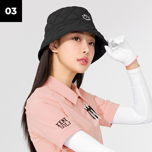 젝시믹스만의 'X' 심볼 퀼팅 패턴으로 유니크하게- 모노 퀼팅 버킷햇 아이보리