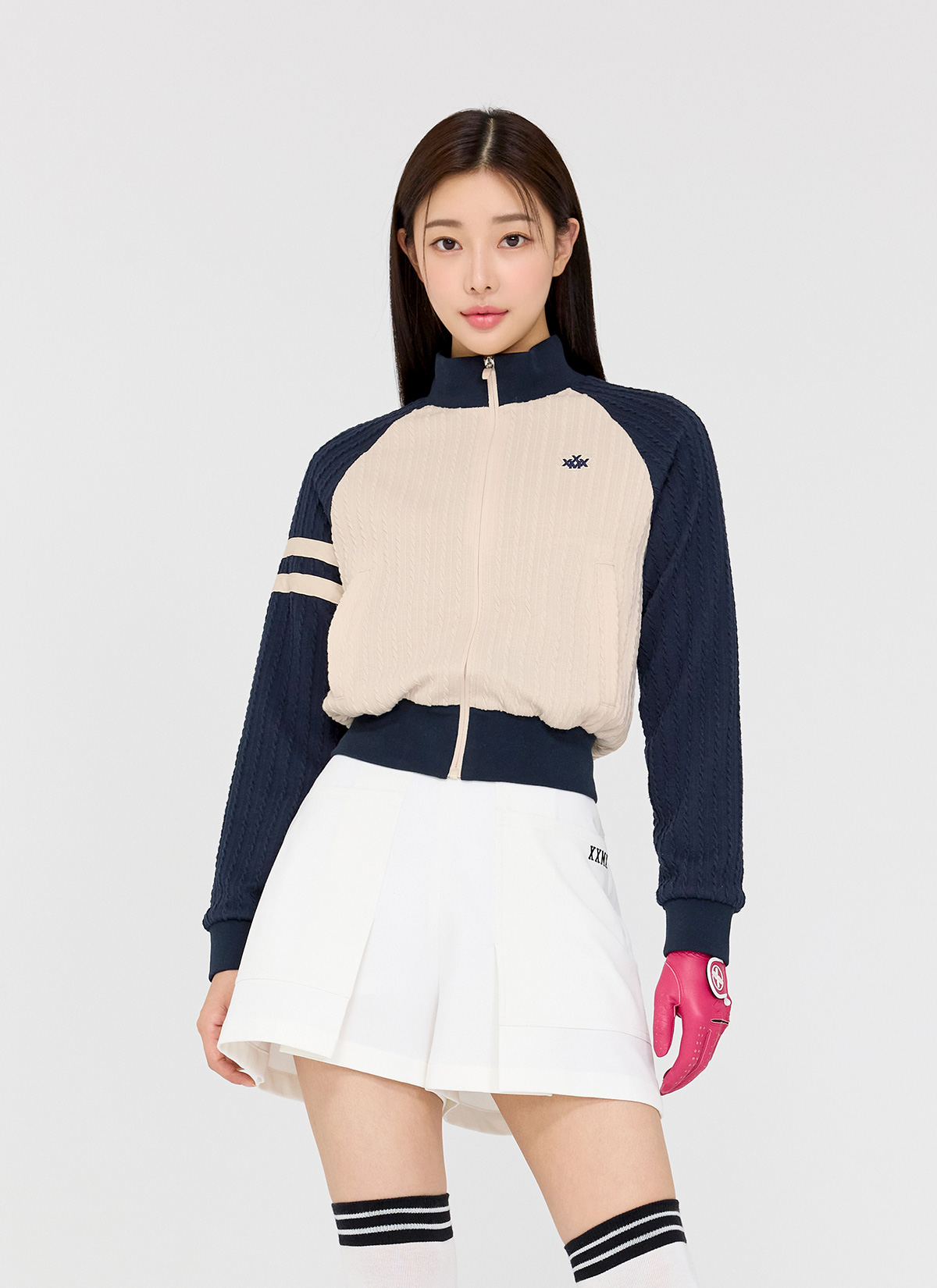 클래식한 케이블 패턴과 다크네이비