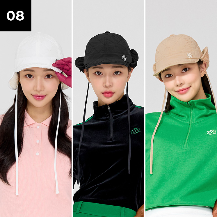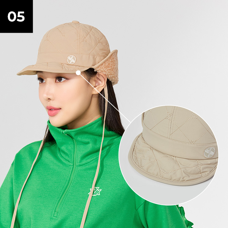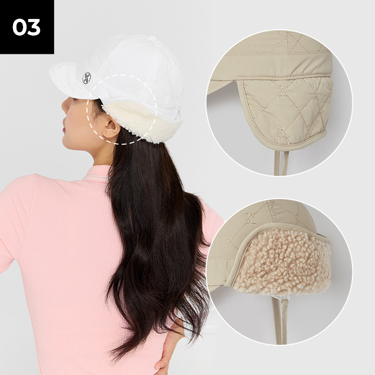 필드에서뿐만 아니라 일상에서도 퀼티드 패딩 퍼 캡