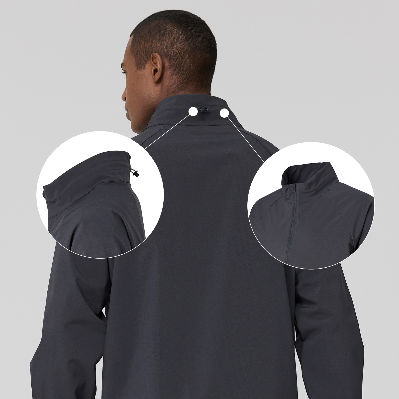 애써 흘린 땀이 식지 않도록, 목을 안정적으로 감싸주는 하이 넥 뒤쪽의 스트링 스토퍼를 조이면 외부로부터의 공기 유입을 차단해 효과적인 땀 배출을 도와줘요.