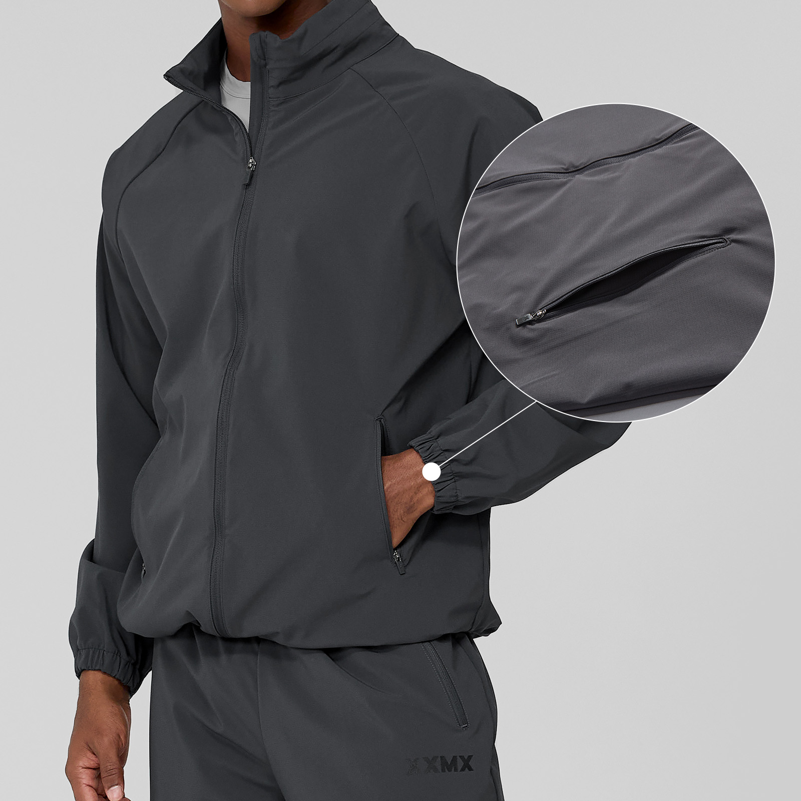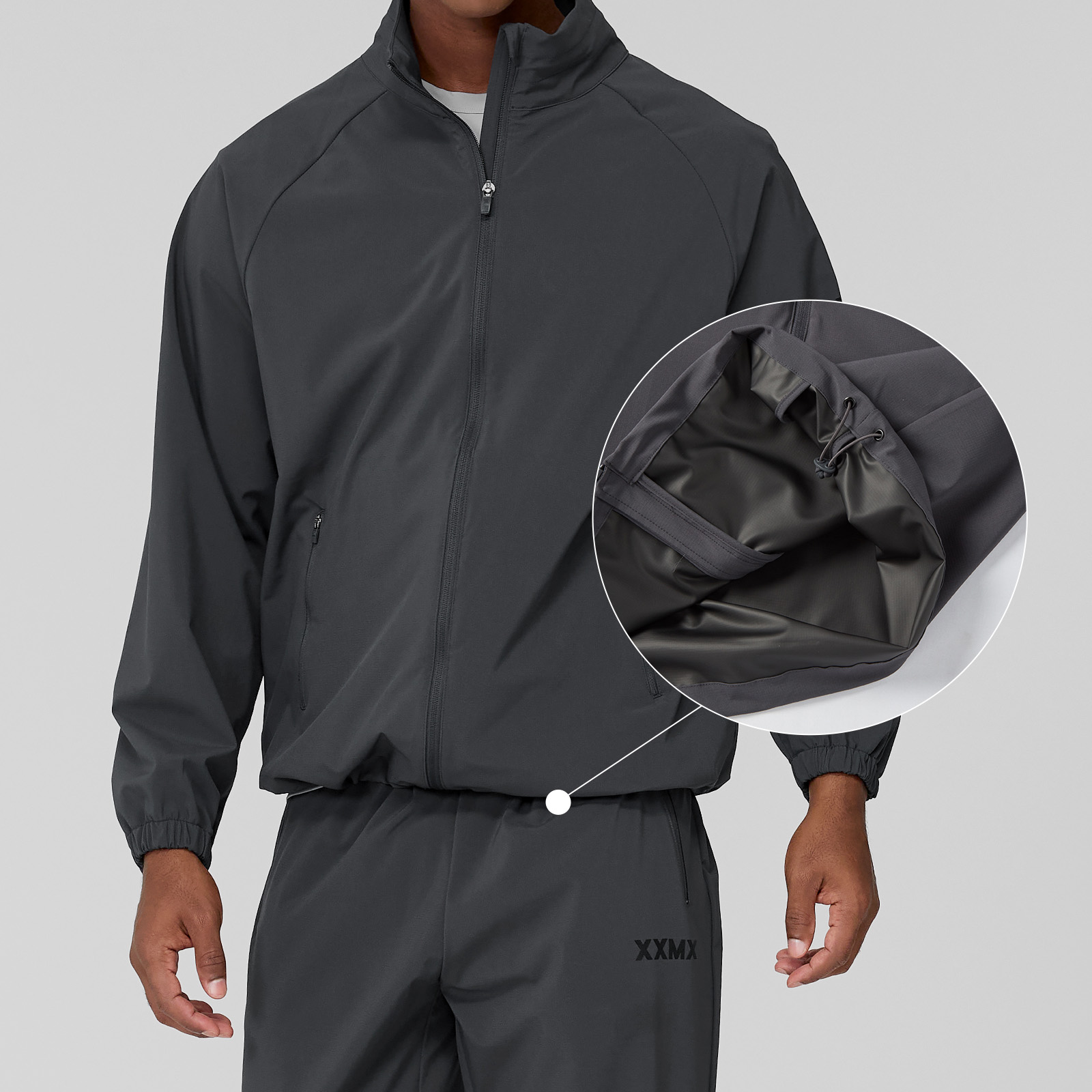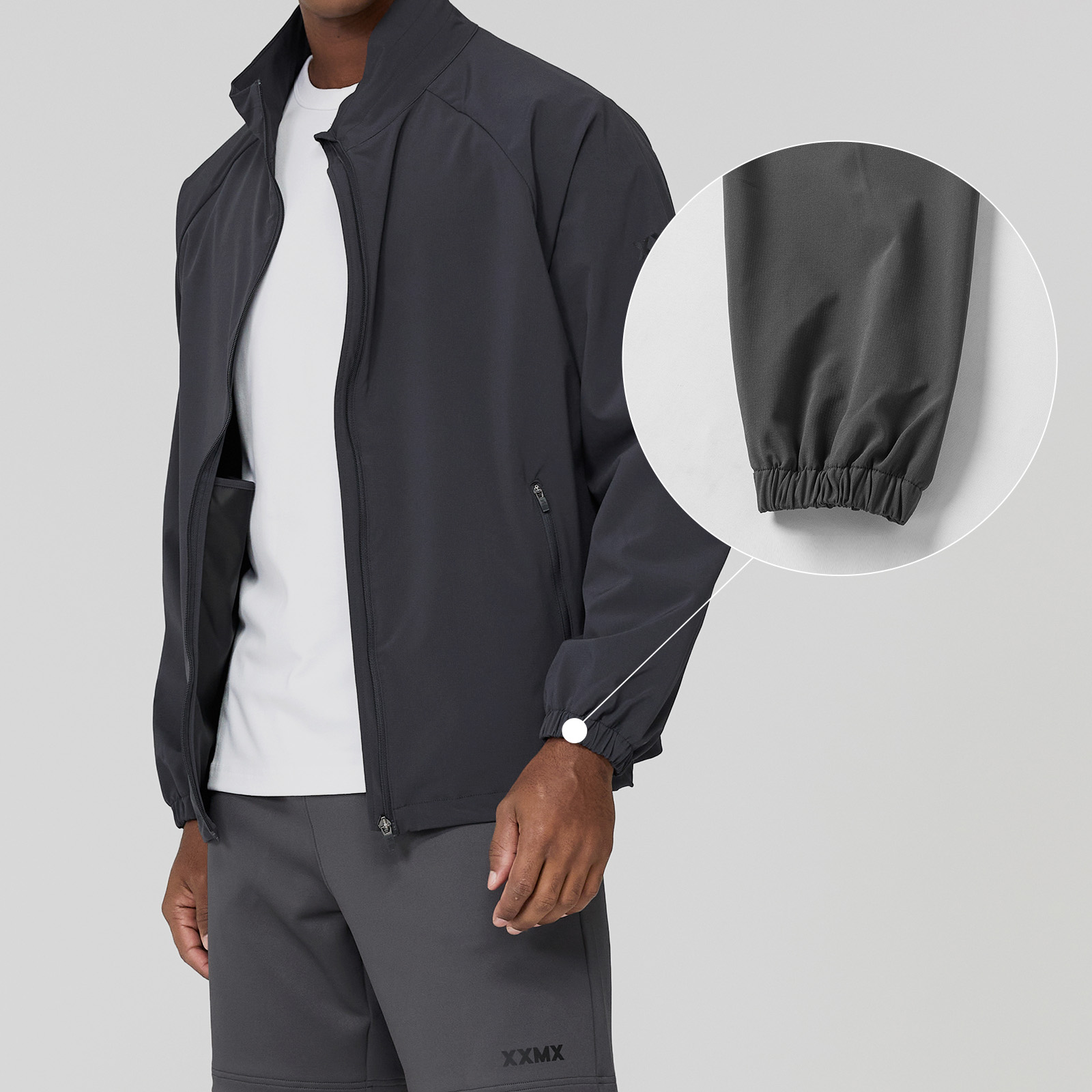 젝시믹스의 아이덴티티를 좌측 소매 상단에 XXMX 로고 프린팅을 넣어 브랜드의 아이덴티티를 깔끔하게 보여줬어요. FABRIC INFO