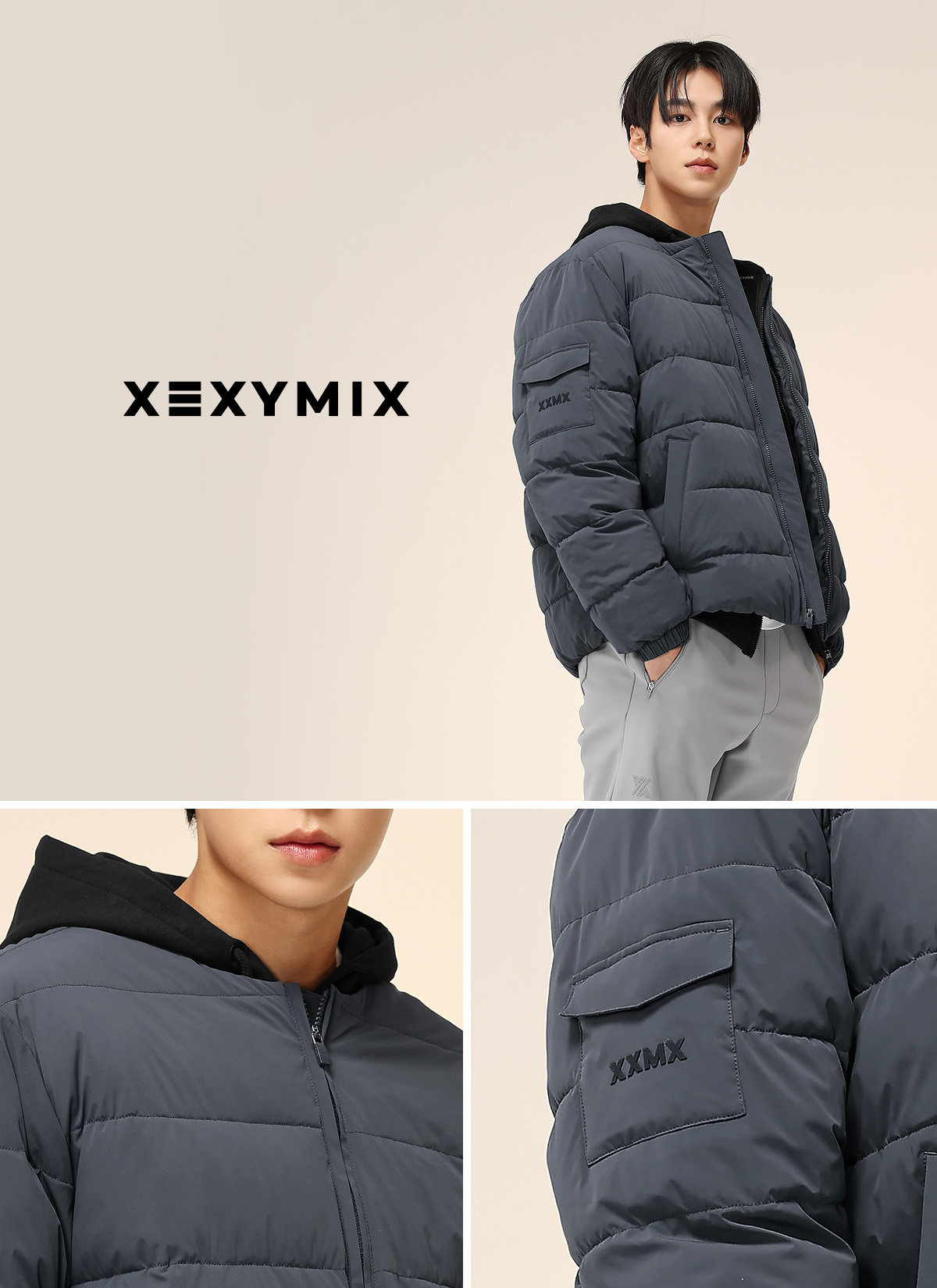 우측 소매 포켓 위에 XXMX 로고를 넣어 FABRIC INFO