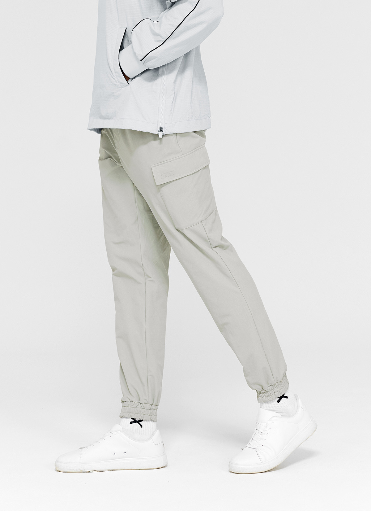 젝시믹스 골프의 좌측 카고 포켓 위에 젝시믹스 XXMX 로고를 넣어 브랜드의 아이덴티티를 깔끔하게 보여줬어요. FABRIC INFO