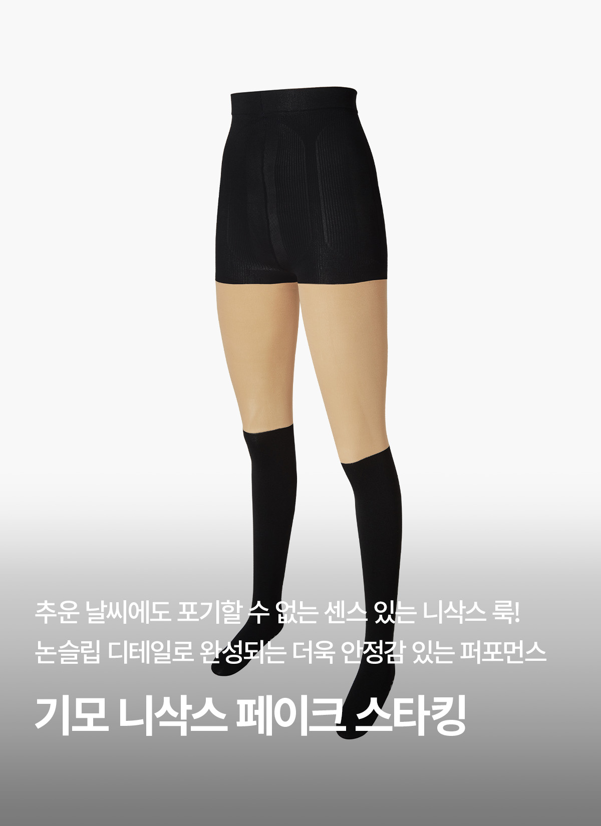 니삭스만 신은 듯한 스타킹과 니삭스를 결합한 디자인으로 흘러내림 없이 편안한 착용감을 선사해요.