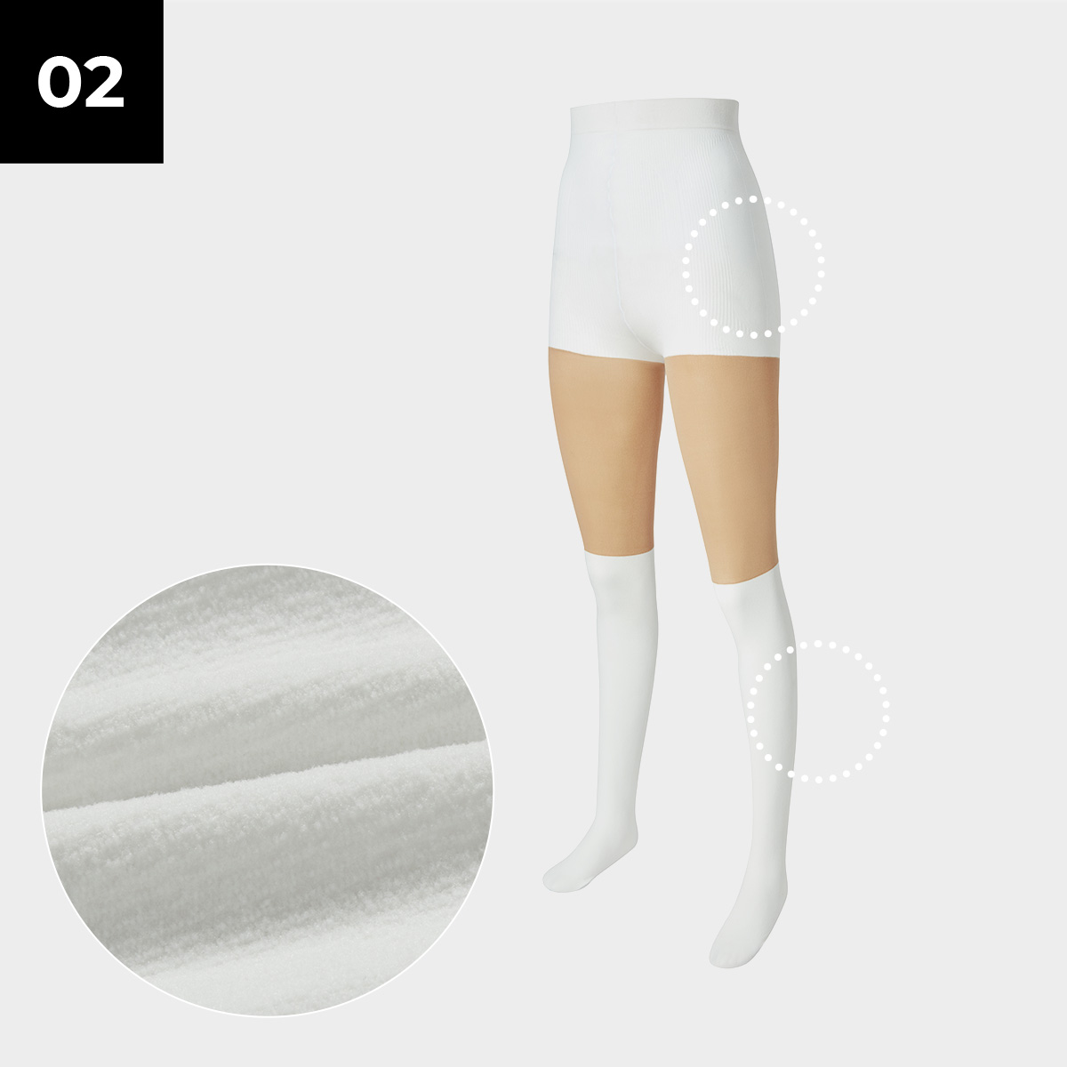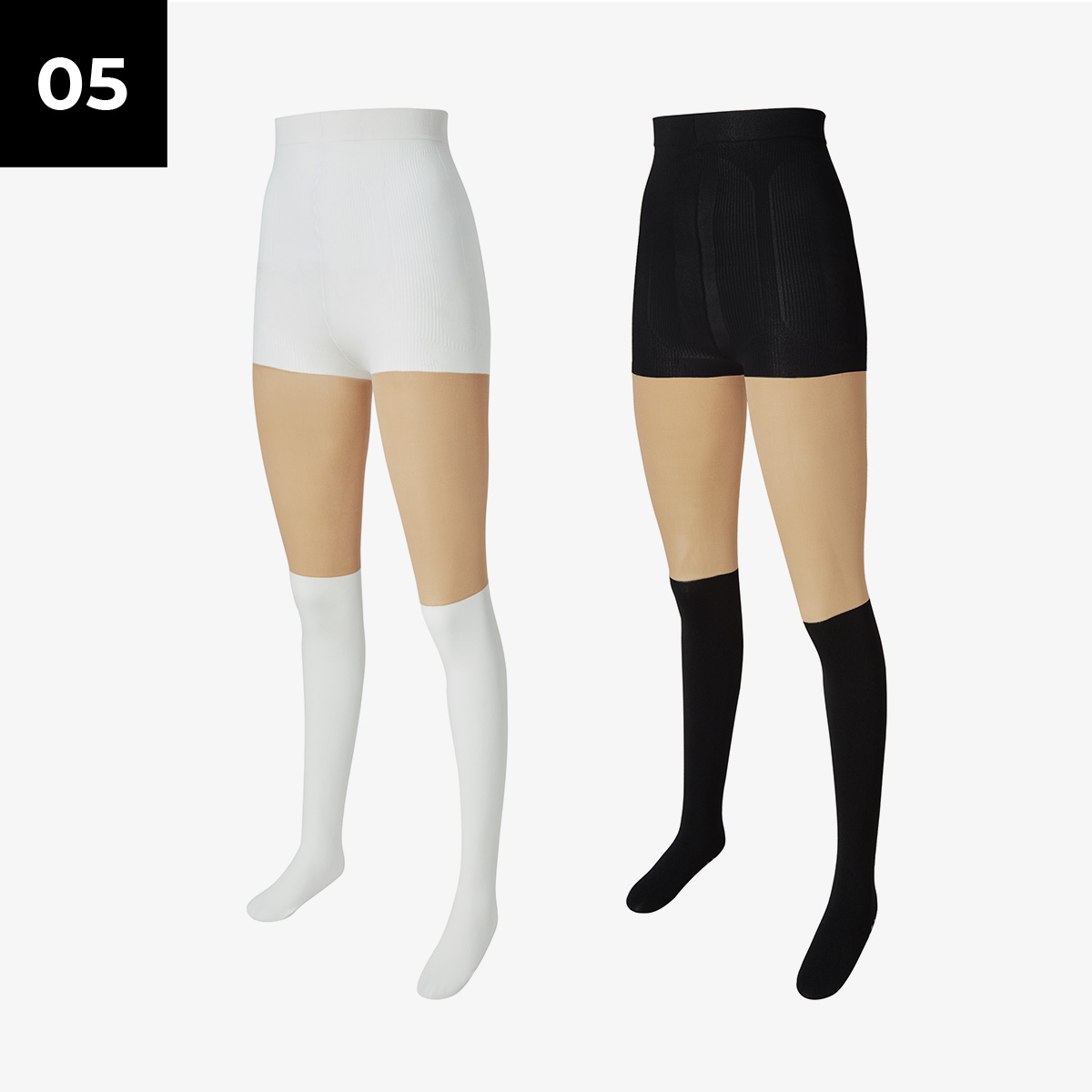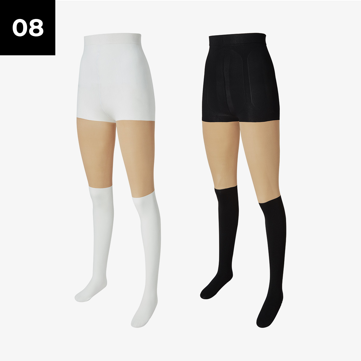 고탄력 소재로 40D의 압박사를 사용하여 다리가 슬림하고 매끄러워 보이는 보정 효과를 줘요.