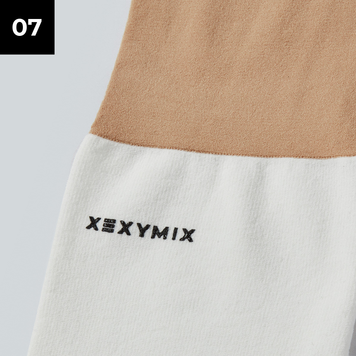 젝시믹스 아이덴티티를 우측 종아리 측면에 젝시믹스 레터링 로고를 넣어 포인트를 더했어요.