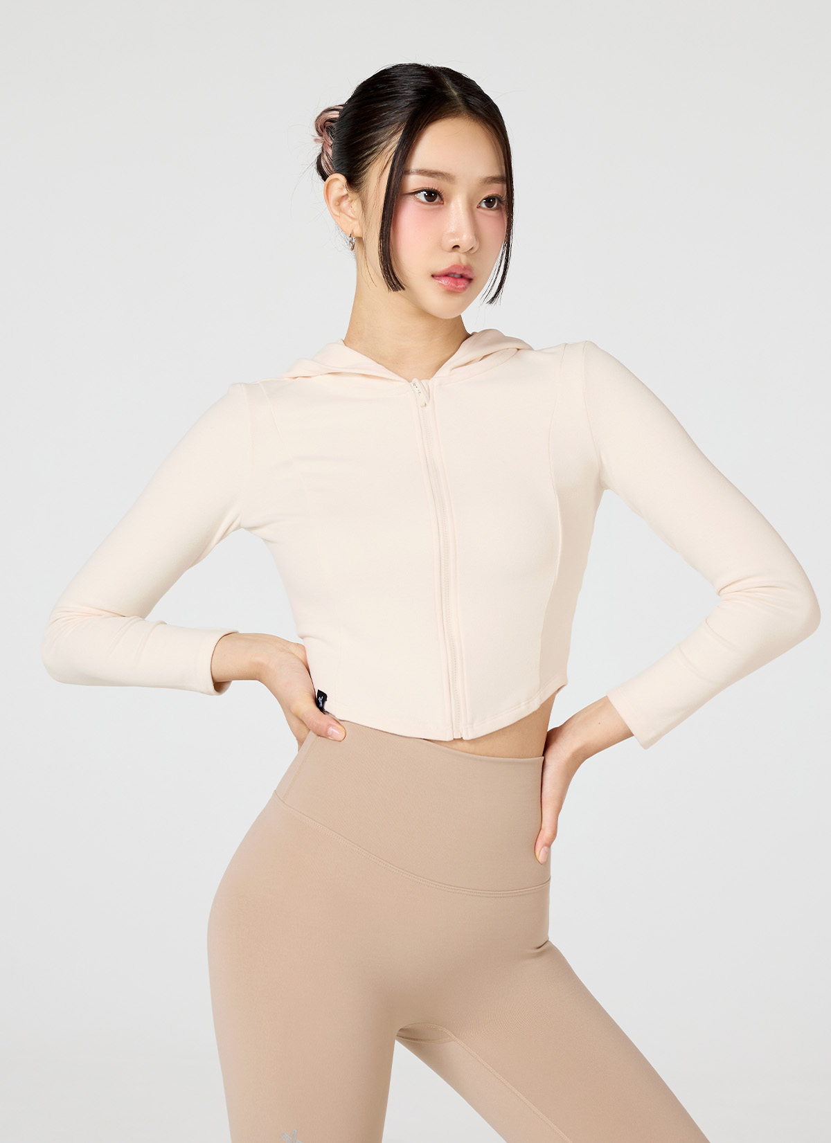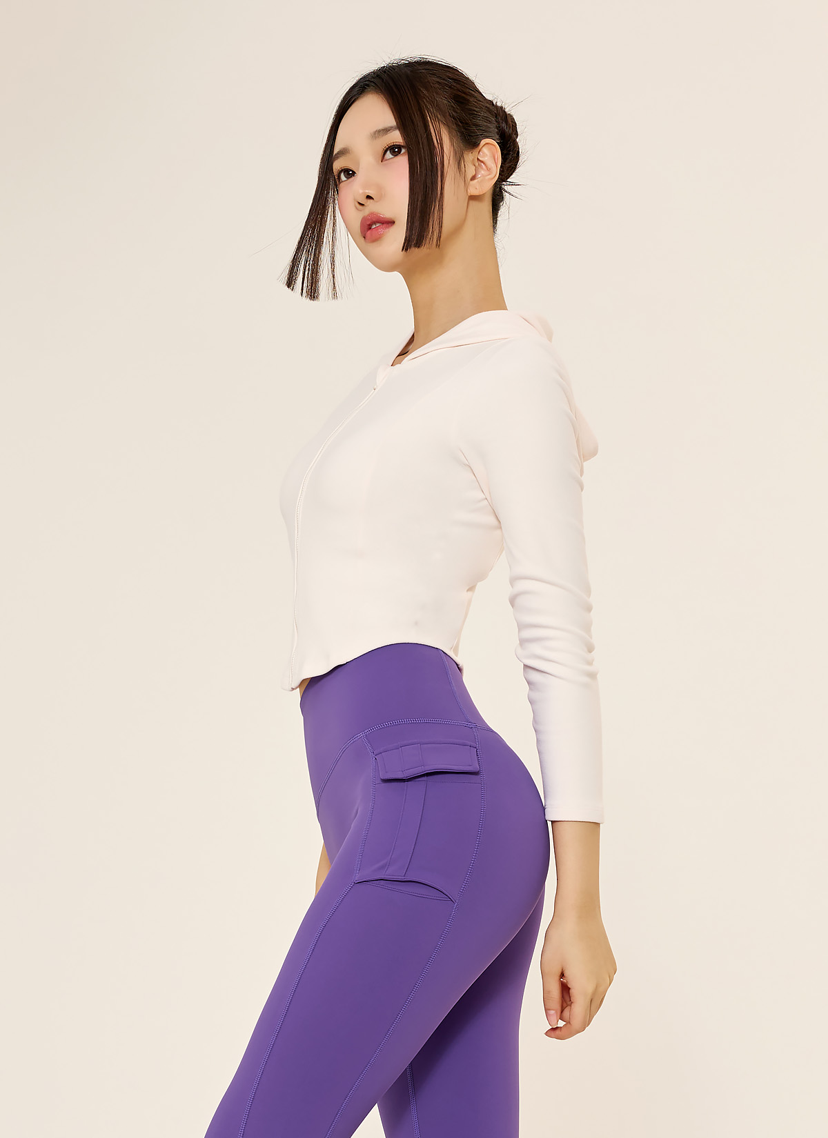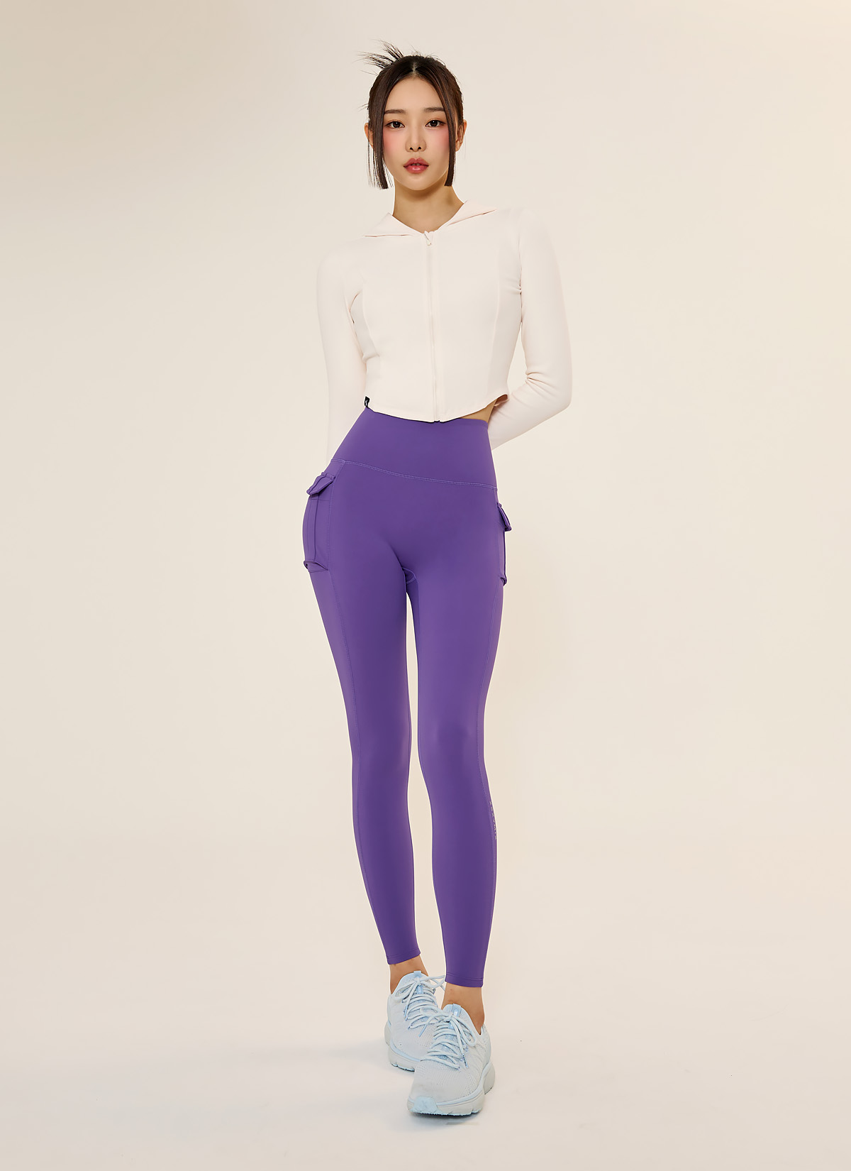 허리선에 떨어지는 이상적인 크롭 기장으로 레그