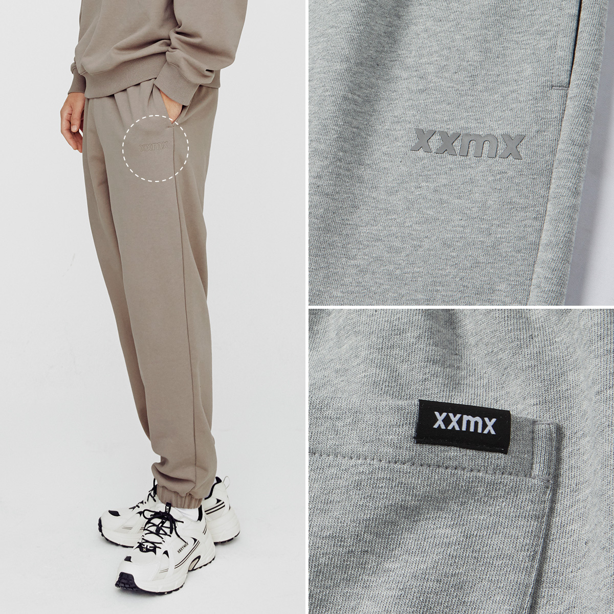 좌측의 톤 온 톤 색감의 스몰 레터 로고와 힙 부분 포인트 라벨로 FABRIC INFO