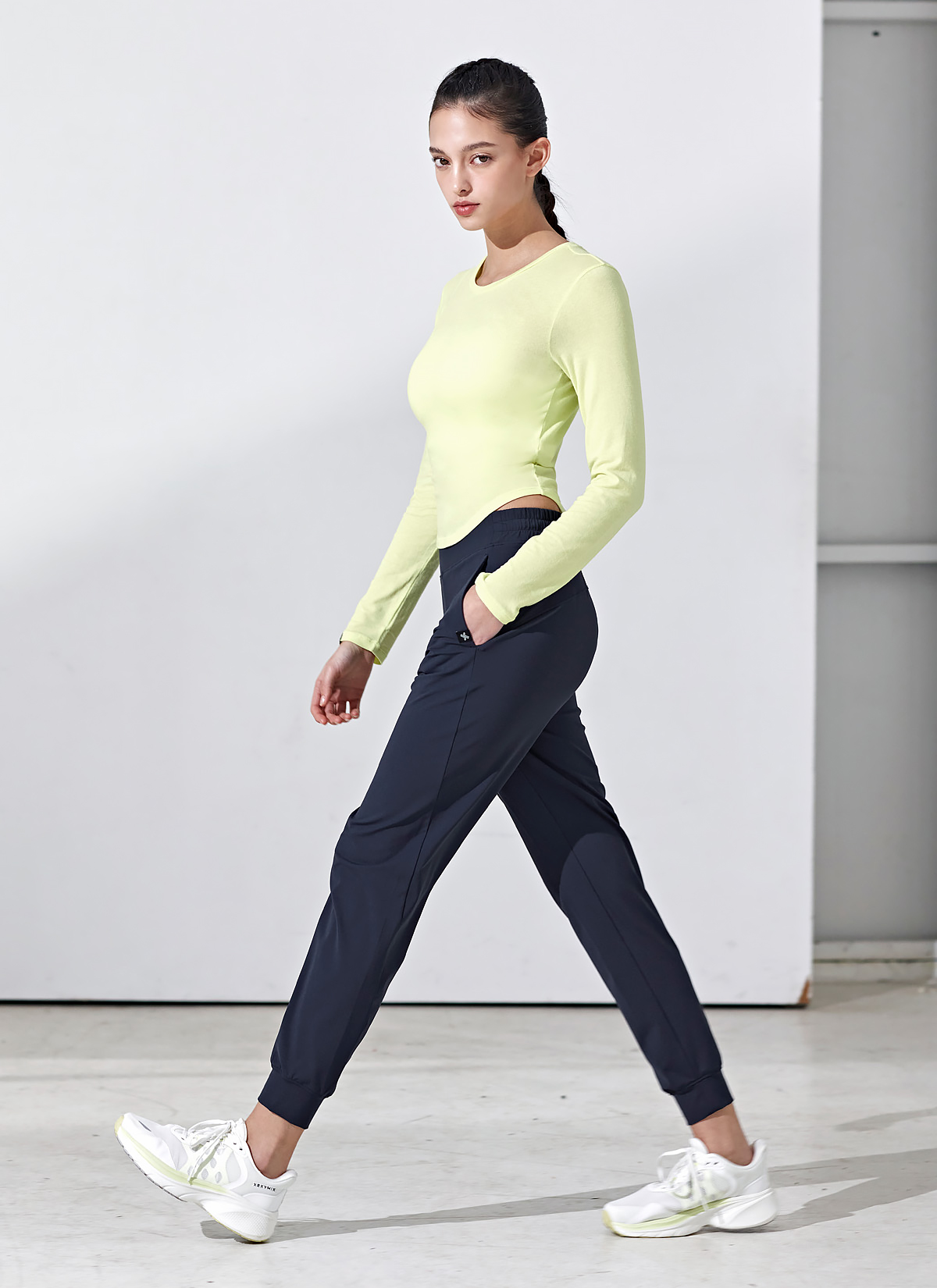 우측 소맷단에 젝시믹스 포인트 라벨을 넣어 FABRIC INFO