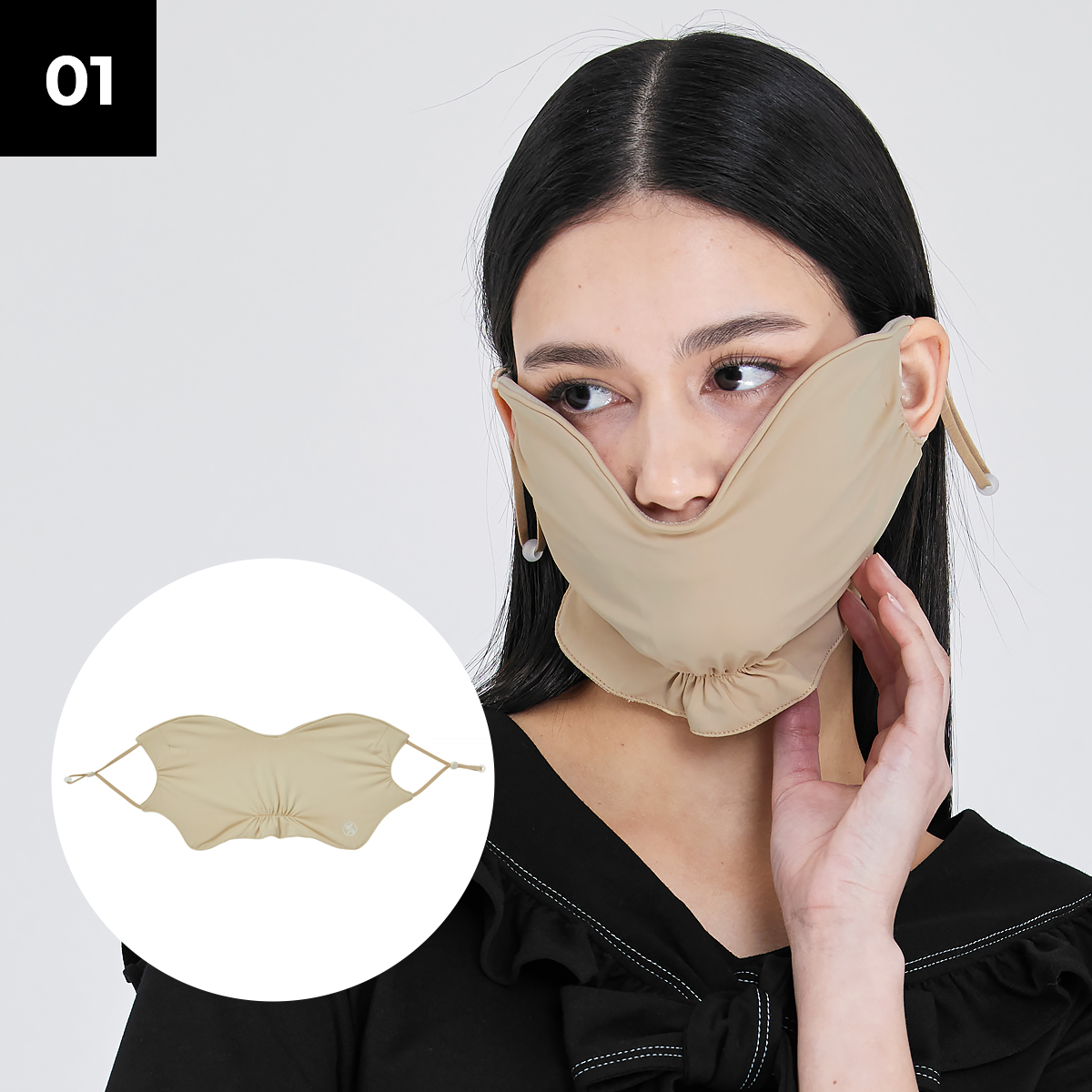 들뜸 없이 완벽 밀착! 얼굴 라인에 내장된 플렉서블 와이어와 턱 아래 부분 밴딩이 얼굴을 안정적으로 감싸줘요.