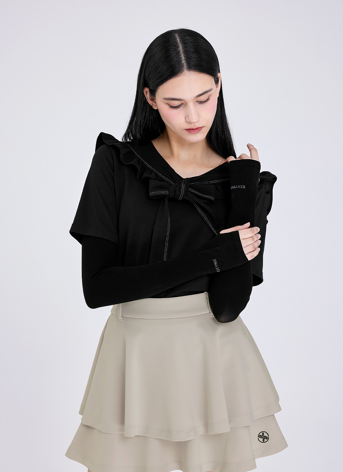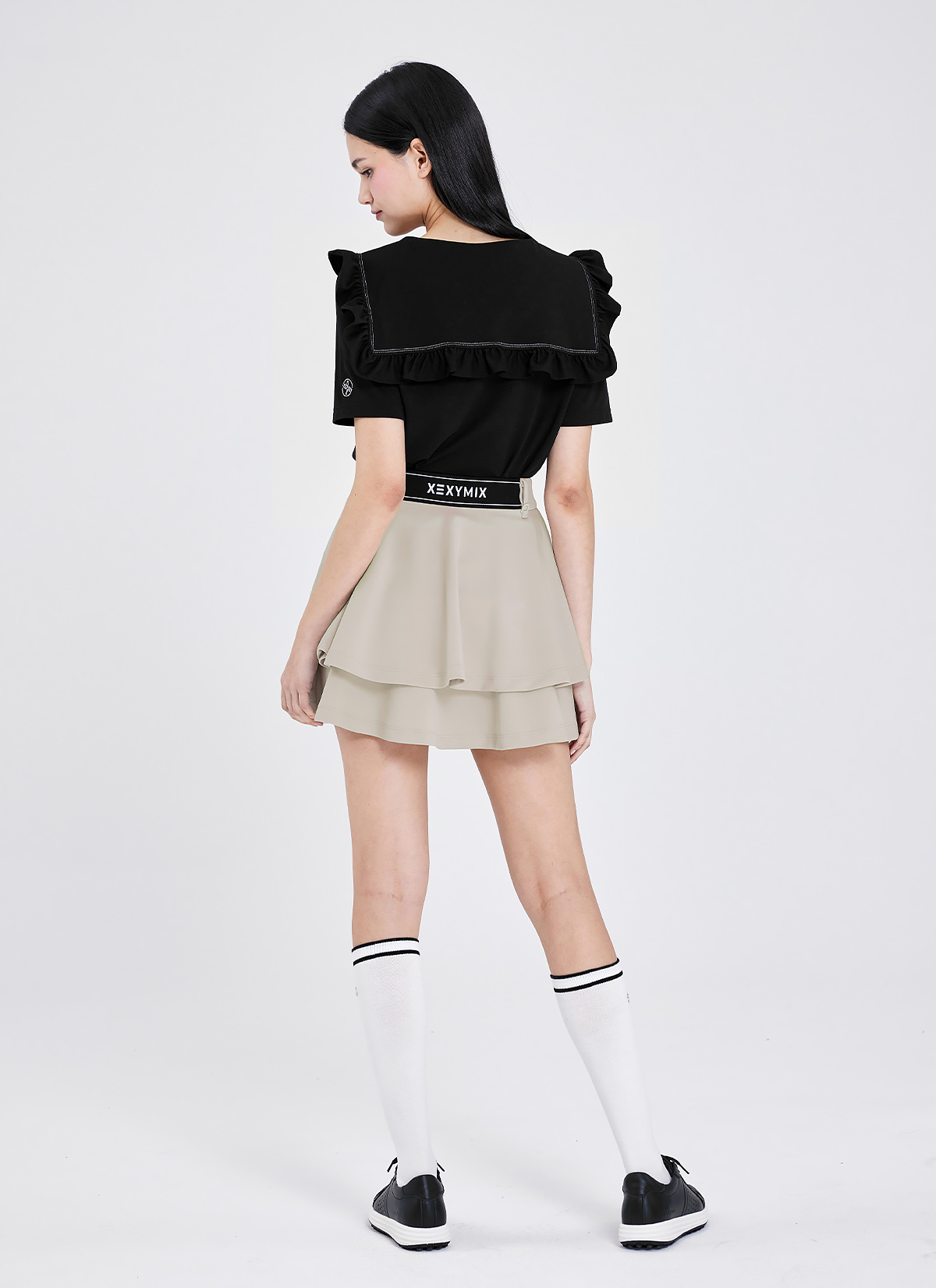 "뒷모습까지 예뻐요!" 러블리한 프릴 장식이 더해진 세일러 칼라 디자인으로, 골프 웨어는 물론 데일리 웨어로도 활용하기 좋아요.