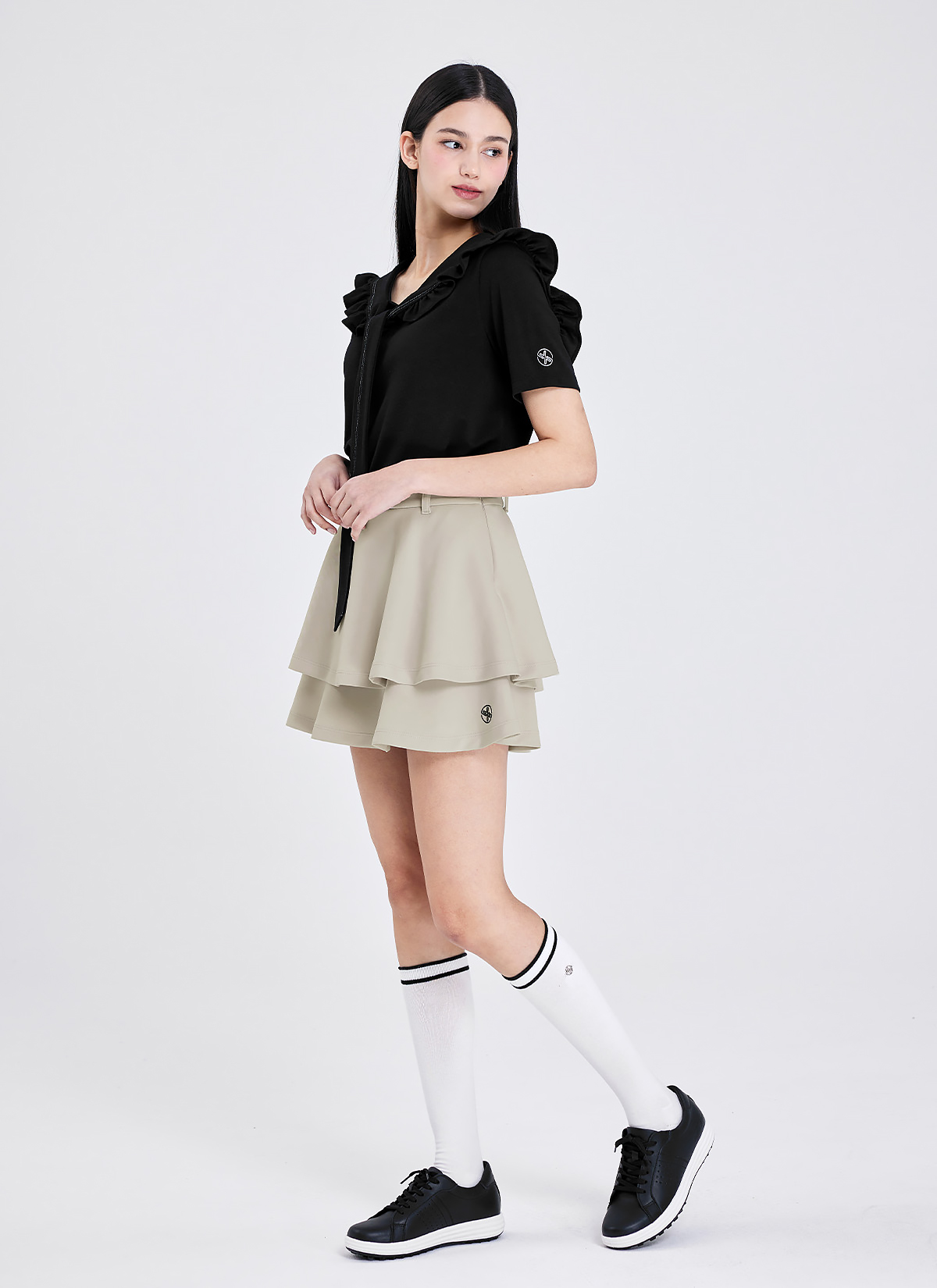필드에서뿐만 아니라 일상에서도 세일러 프릴 칼라 숏슬리브 그린 위 스타일도, 스윙도 완벽하고 싶은 당신만을 위한 러블리 필드 웨어 블랙