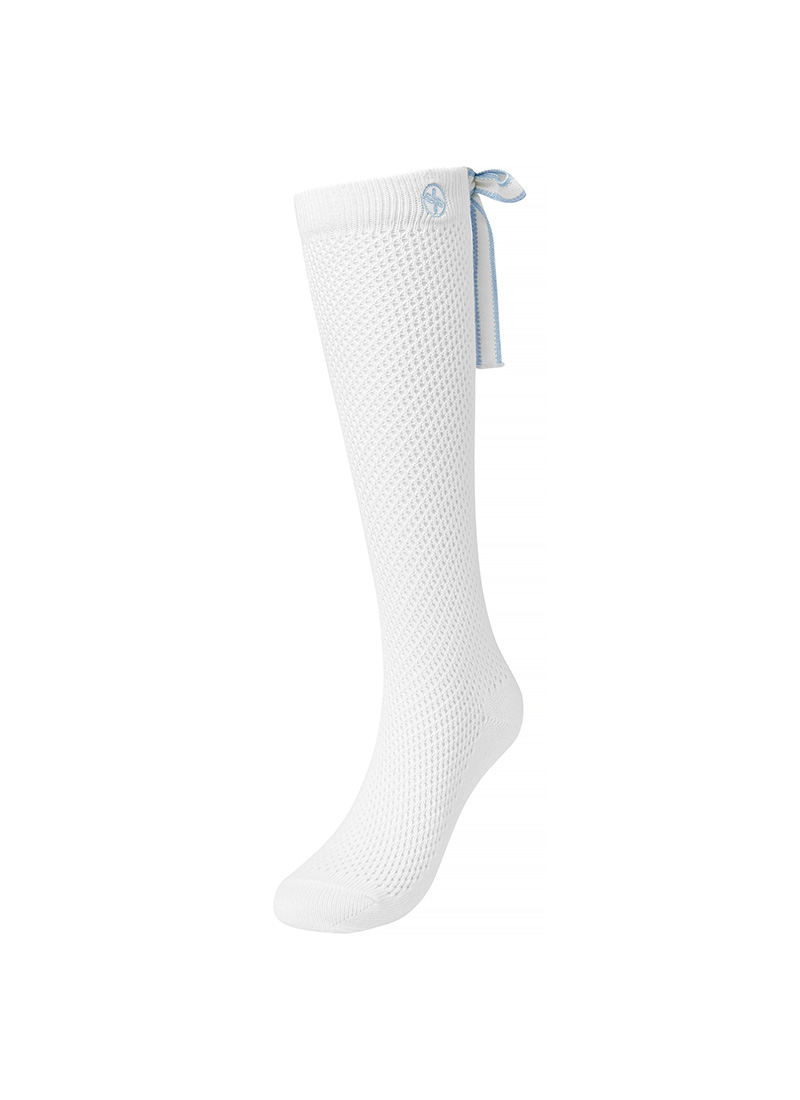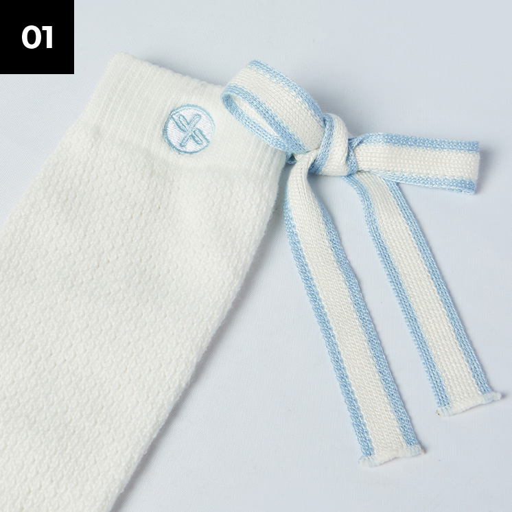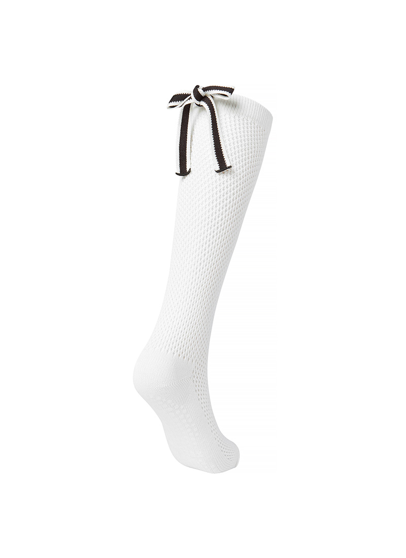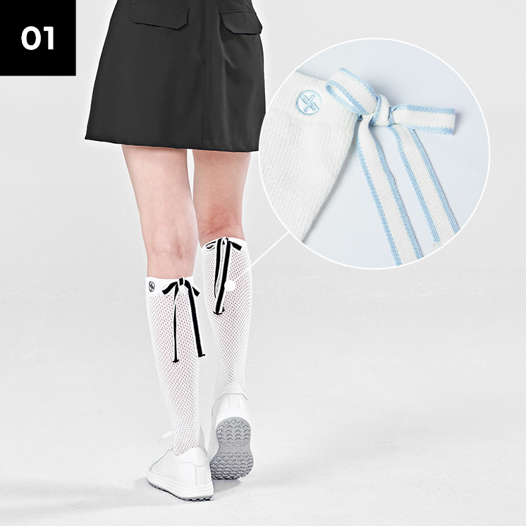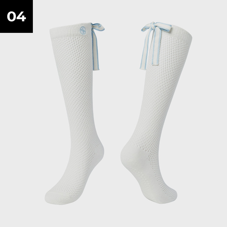 뒷모습까지 예쁜, 라인 배색을 넣은 백 리본 디테일로 여성스러우면서도 캐주얼한 무드의 니삭스예요.