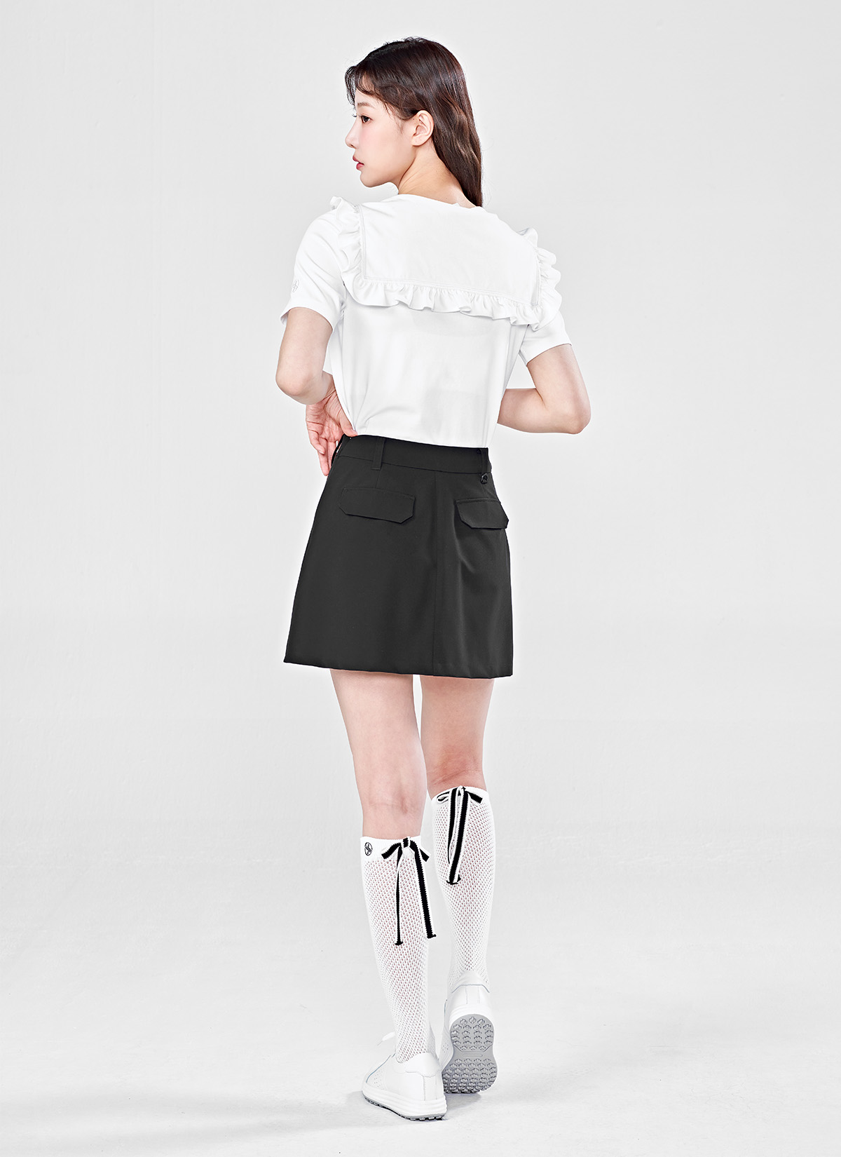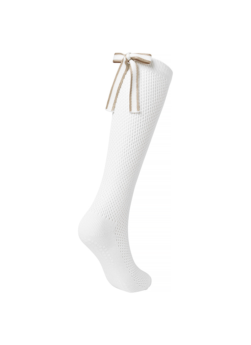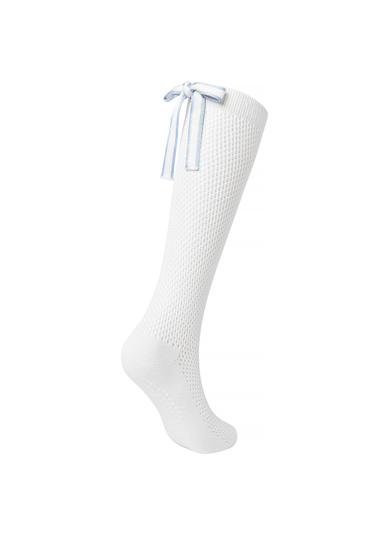 뒷모습까지 예쁜, 라인 배색을 넣은 백 리본 디테일로 여성스러우면서도 캐주얼한 무드의 니삭스예요.