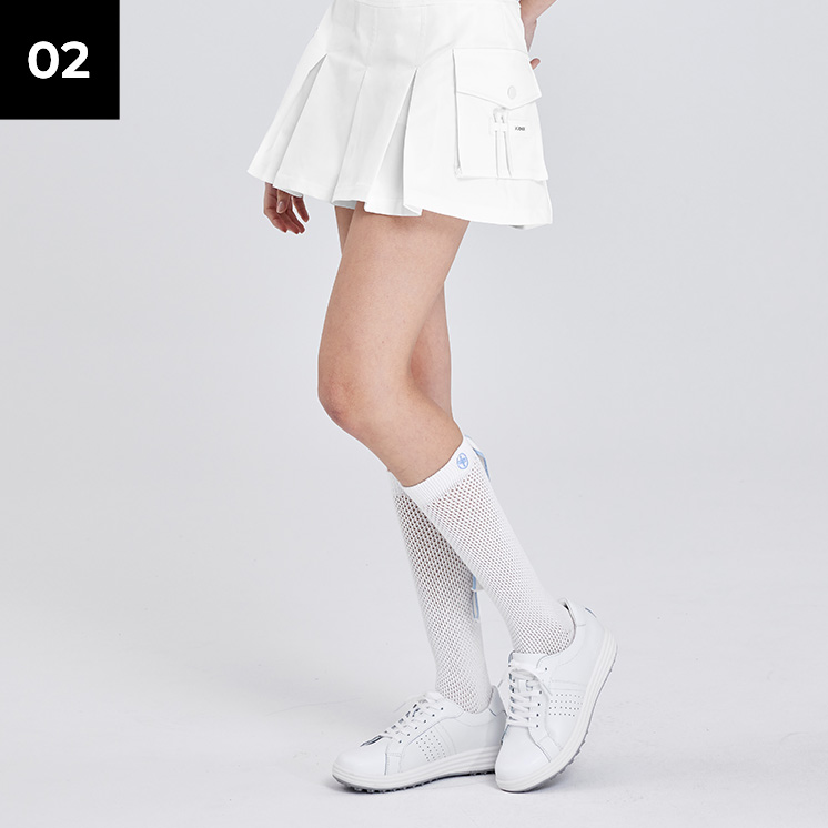 니 삭스의 정석! 무릎 아래까지 올라오는 부담 없는 기장으로 다양한 룩에 매치하기 좋아요.