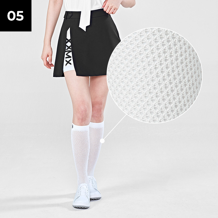 필드 위에서도 쾌적하도록, 발등부터 종아리까지 네트 짜임으로 편직하여 스타일은 물론 통기성을 더욱 높여줘요.