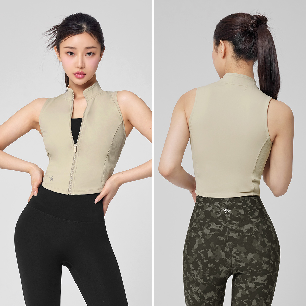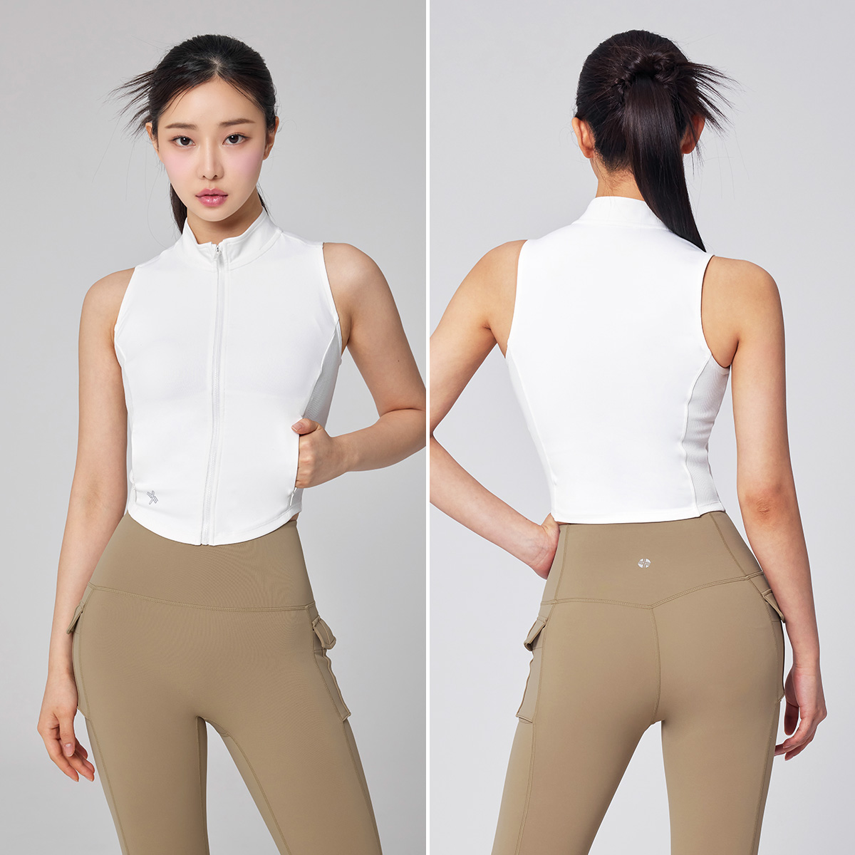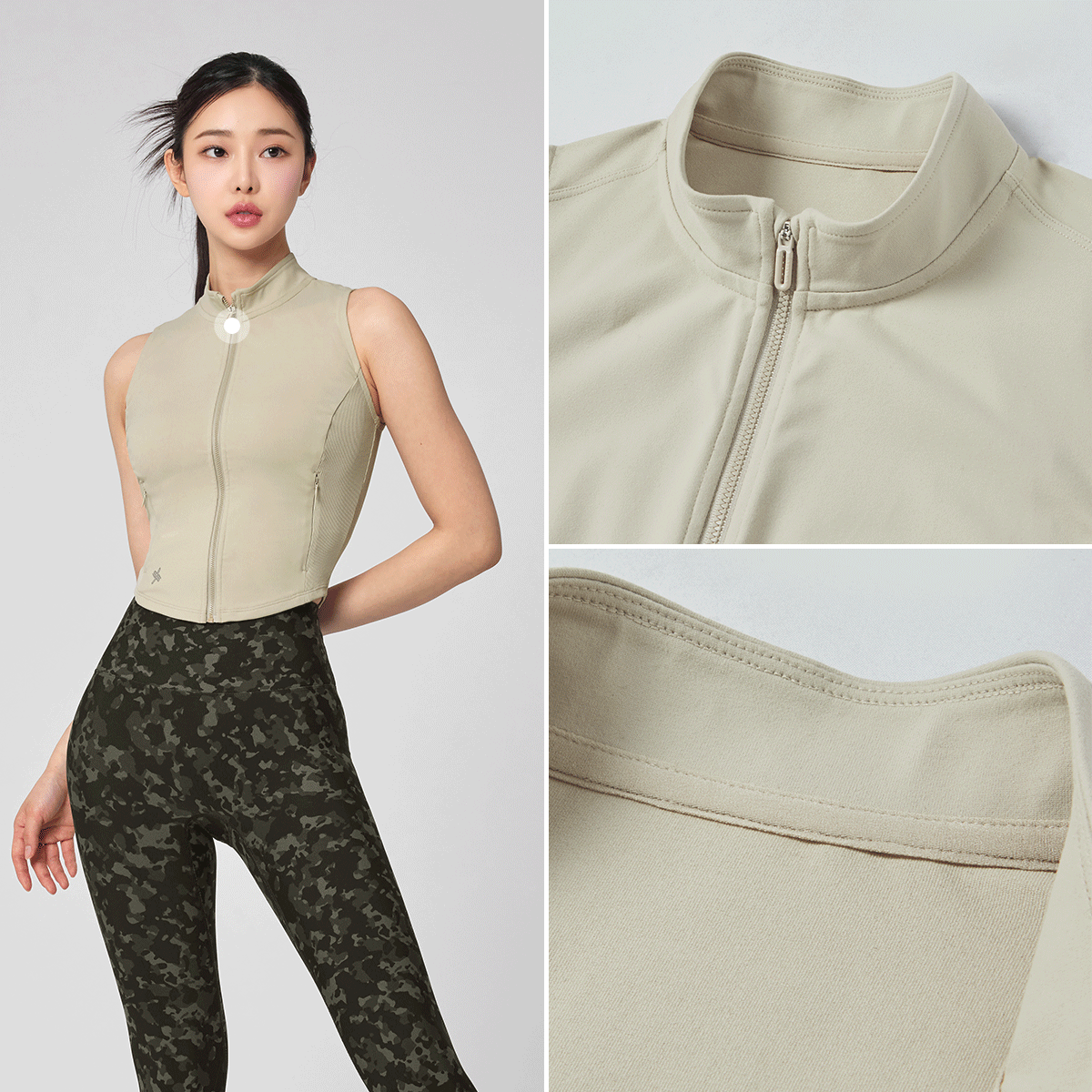 다양한 연출로 활용도 만점! 입고 벗기 간편한 풀 집업 스타일의 베스트로, 브라 탑 위에 가볍게 걸쳐 레이어링하기 좋아요.