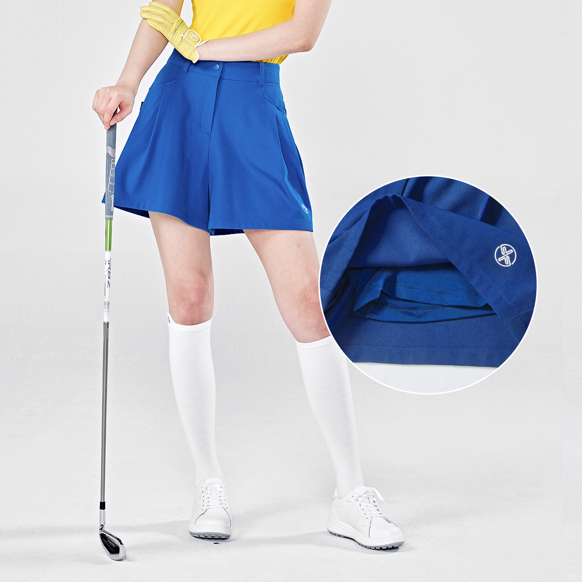 "이너 쇼츠가 있어 안심이죠!" 쇼츠 안쪽에 이너 쇼츠가 내장된 투인원 스타일로, 스윙 동작이나 카트 착석 시 노출 부담을 줄여줘요.