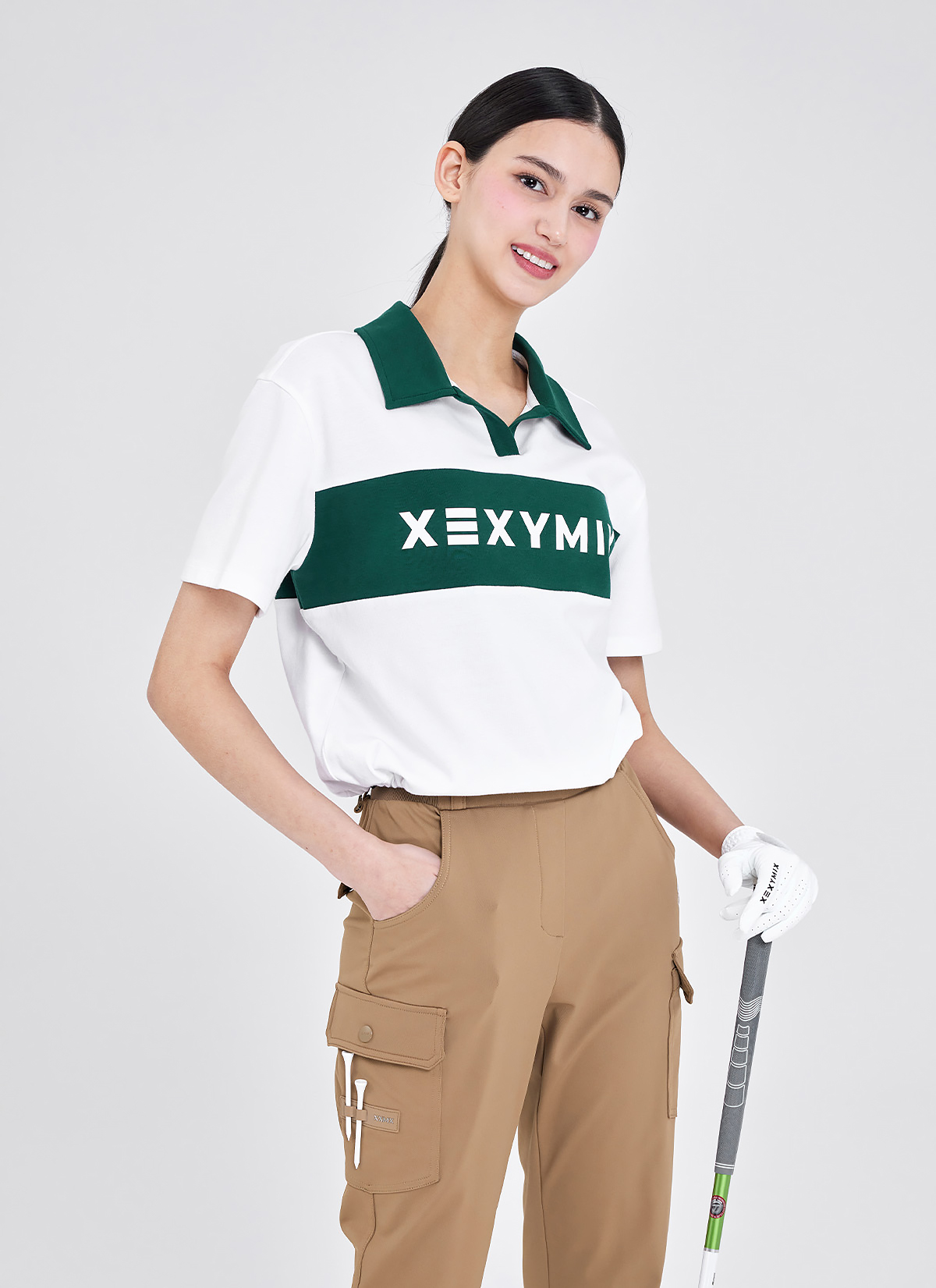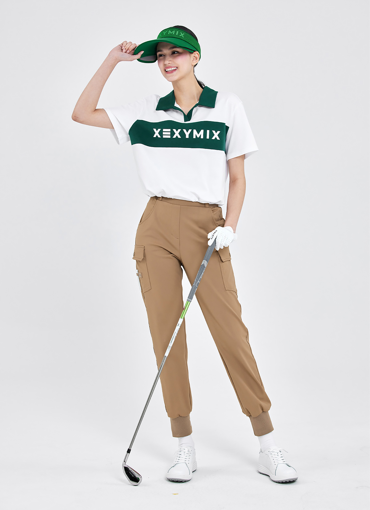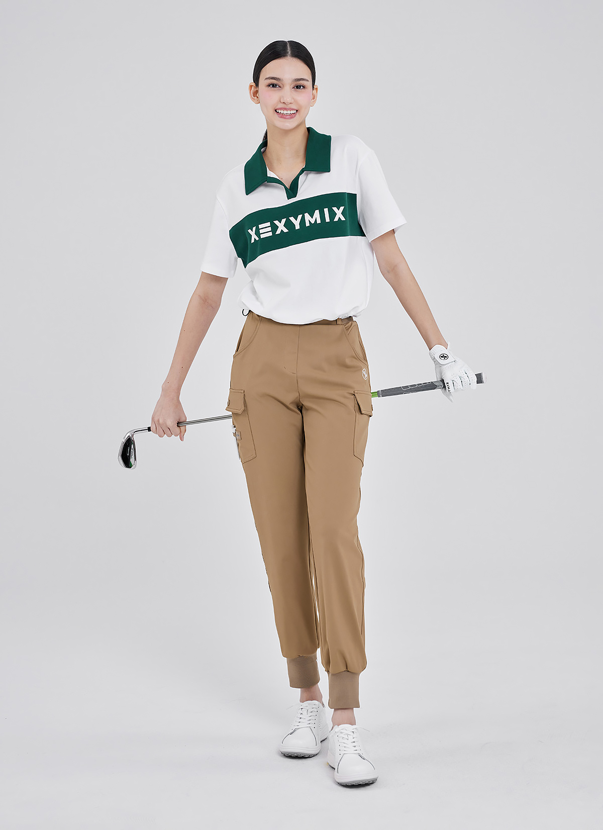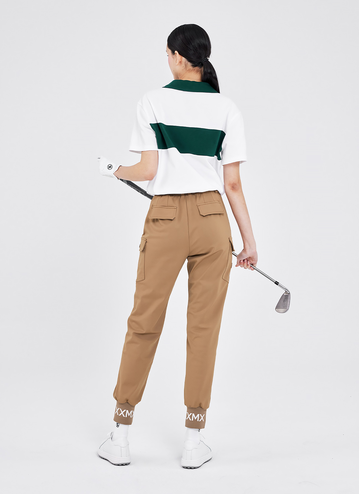 "라운딩 시 필요한 사이드 포켓과 허벅지 카고 포켓으로 실용성을 높이고, 티꽂이 로고 와펜을 더해 라운딩 시 티를 보관할 수 있어 간편해요.