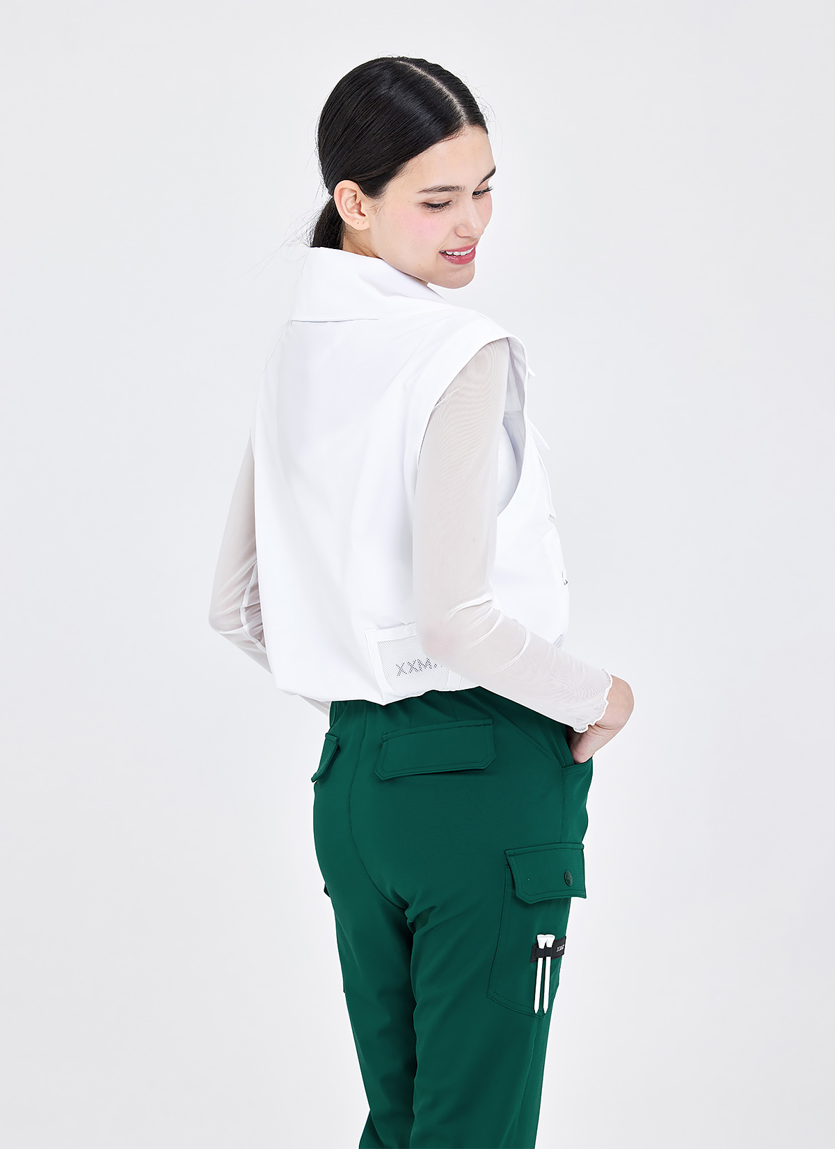 뒷모습까지도 멋스럽게, 힙 부분에 다트를 잡아 입체적인 힙 라인을 완성해 주며, 페이크 플랩 포켓을 더해 뒷모습까지 신경 쓴 퀄리티가 돋보여요.