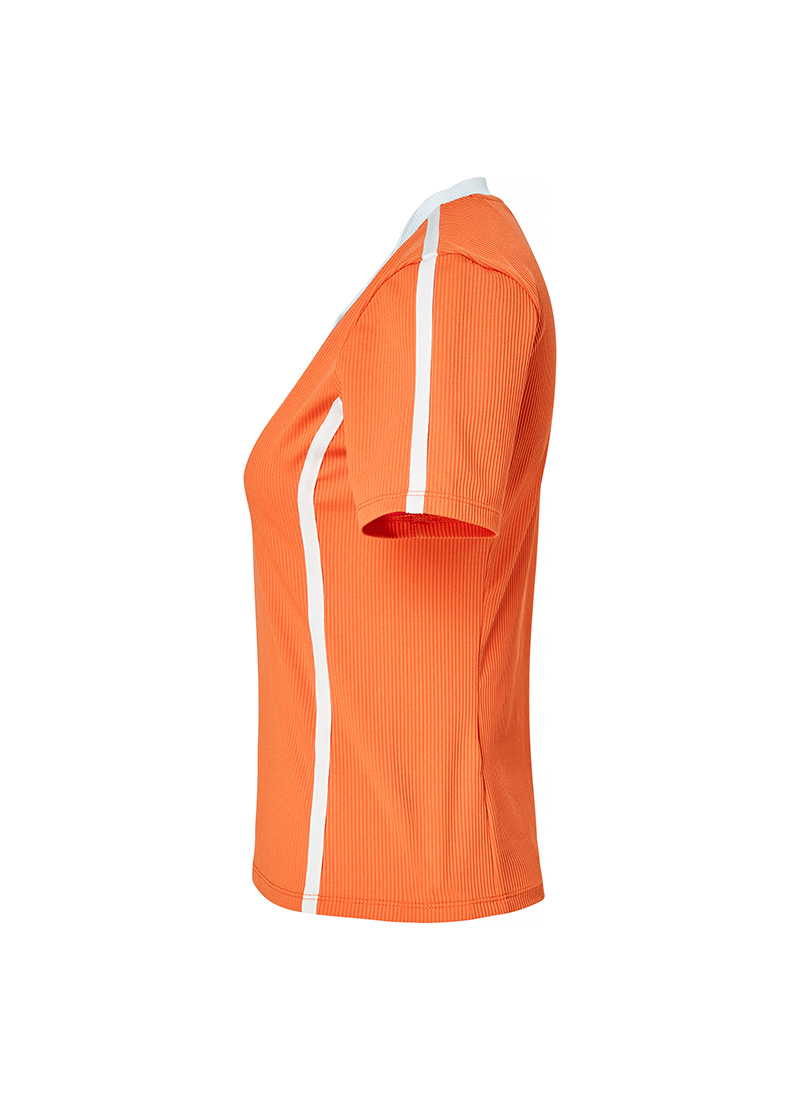 필드에서뿐만 아니라 일상에서도 프레시 저지 브이넥 숏슬리브 산뜻한 컬러 포인트로 시선을 사로잡는 스타일, 라운딩부터 일상까지 스포티 무드로 액티브하게! 오렌지