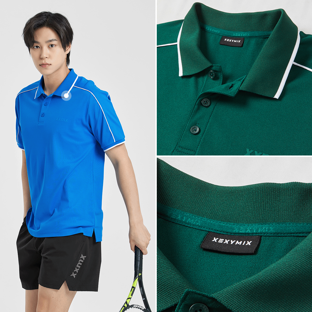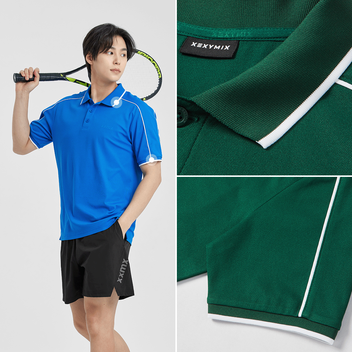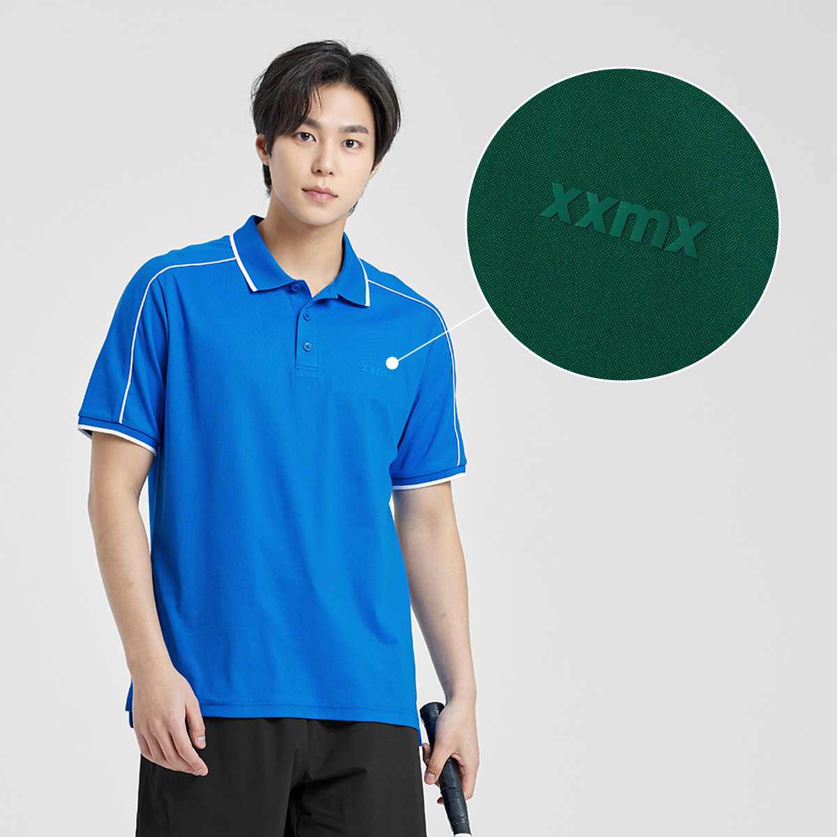 젝시믹스의 아이덴티티를 좌측 가슴 부분에 XXMX 로고 프린팅을 넣어 브랜드의 아이덴티티를 깔끔하게 보여줬어요. FABRIC INFO