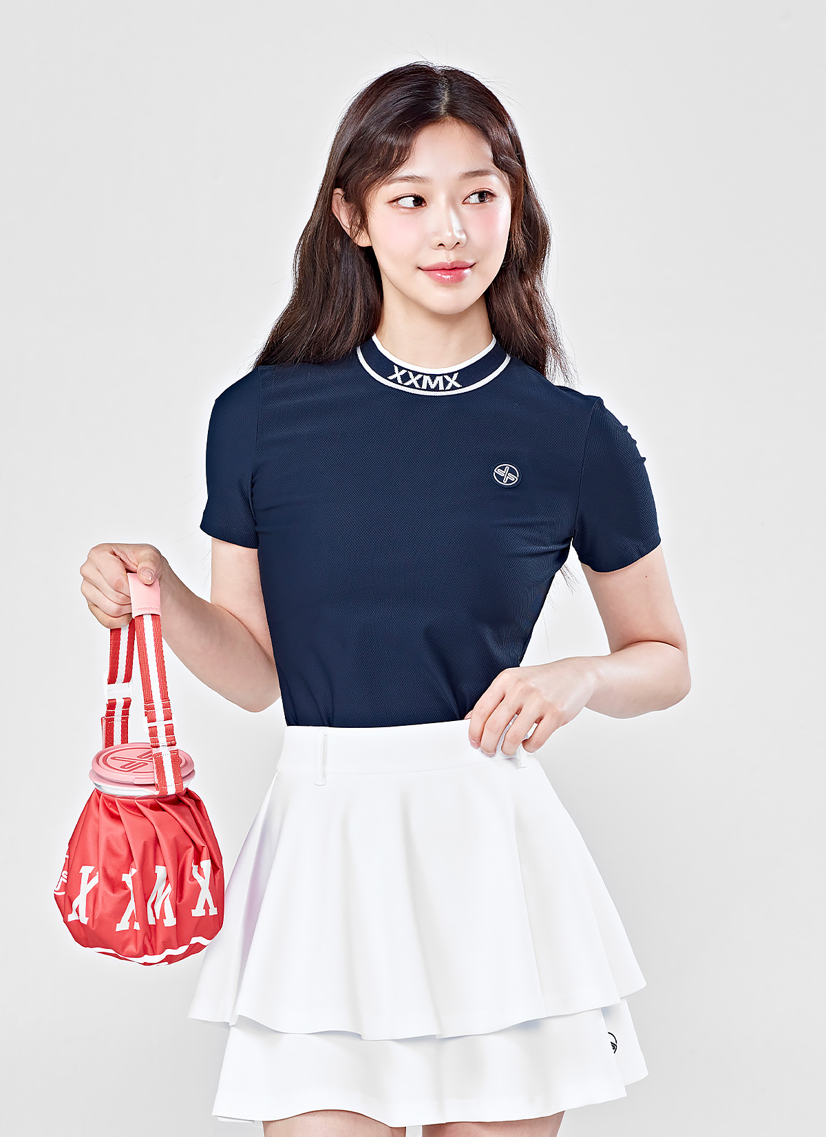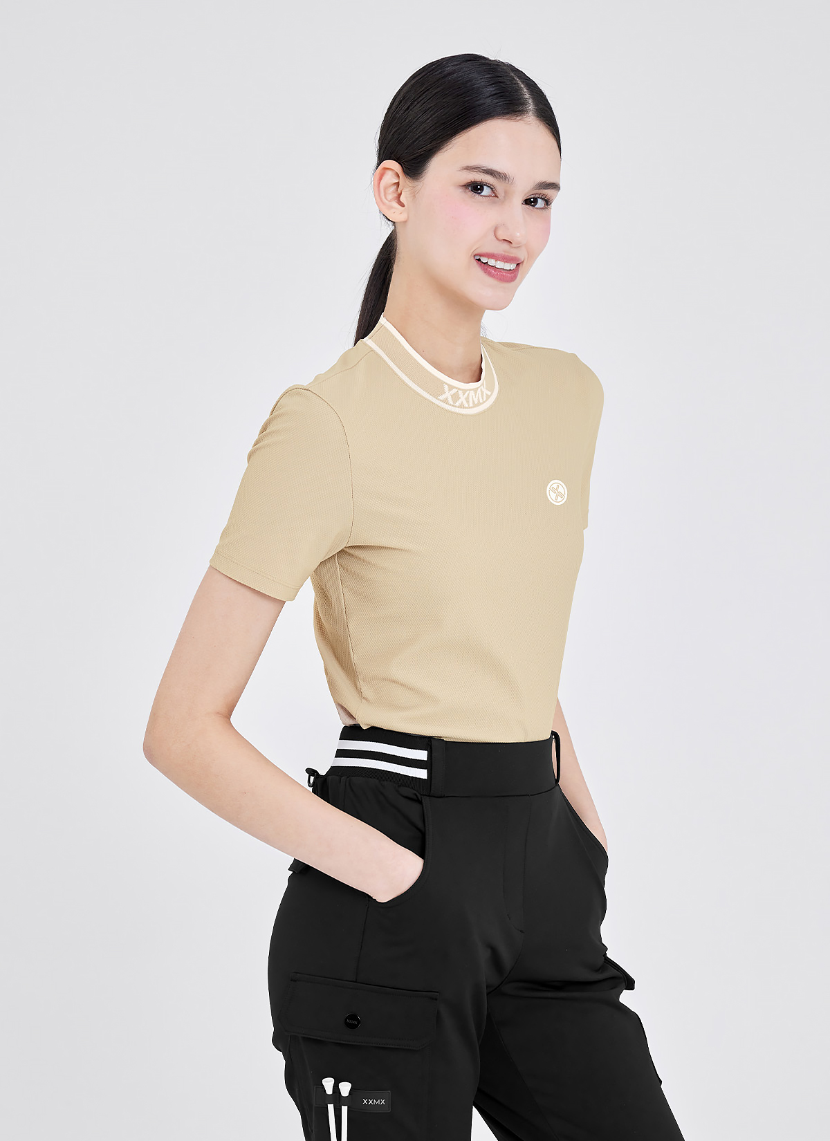 "얼굴이 더 화사해 보여요!" 목 둘레를 편안하게 감싸주는 넥 라인에, 젝시믹스의 아이덴티티를 담은 XXMX 자카드 로고와 배색 라인으로 캐주얼한 무드를 더했어요.