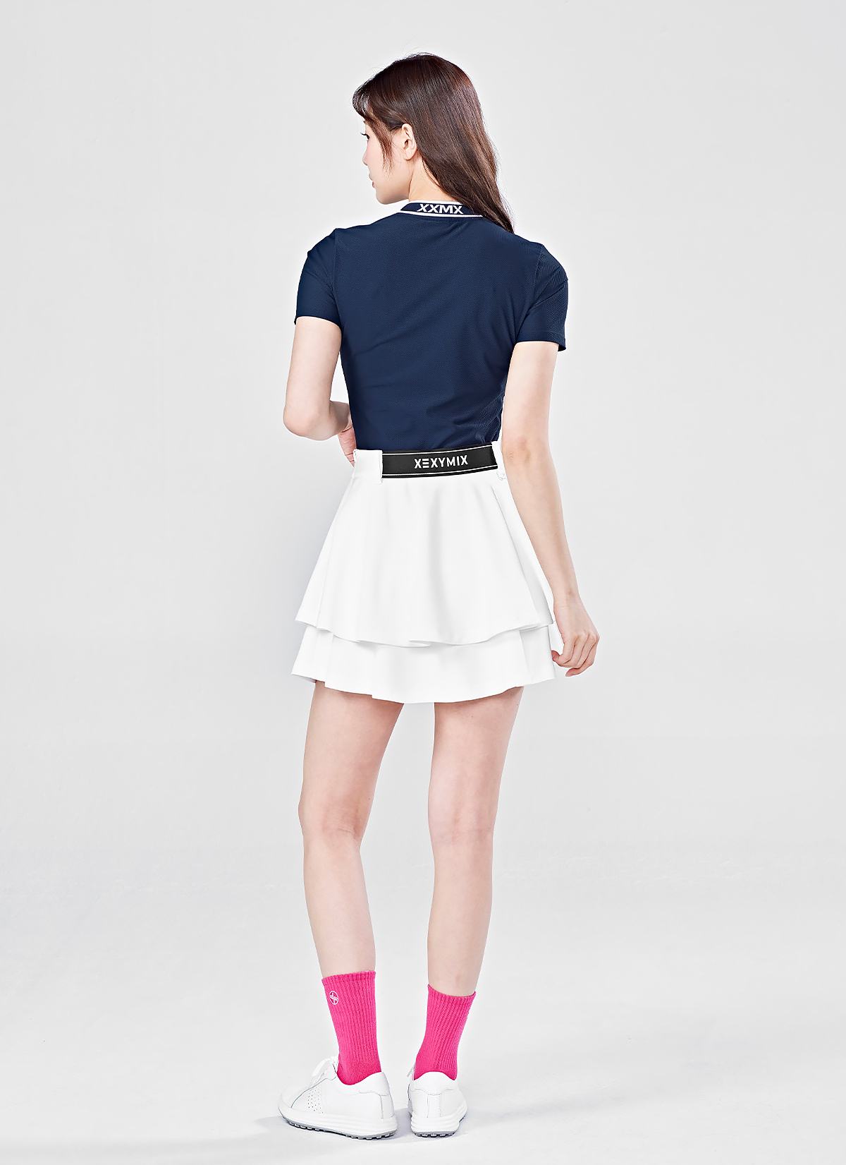 "보이지 않는 부분까지 넥 라인 안쪽을 젝시믹스 로고 테이프로 마감하여 늘어짐을 방지해 주며, 완성도 높은 퀄리티가 돋보여요.