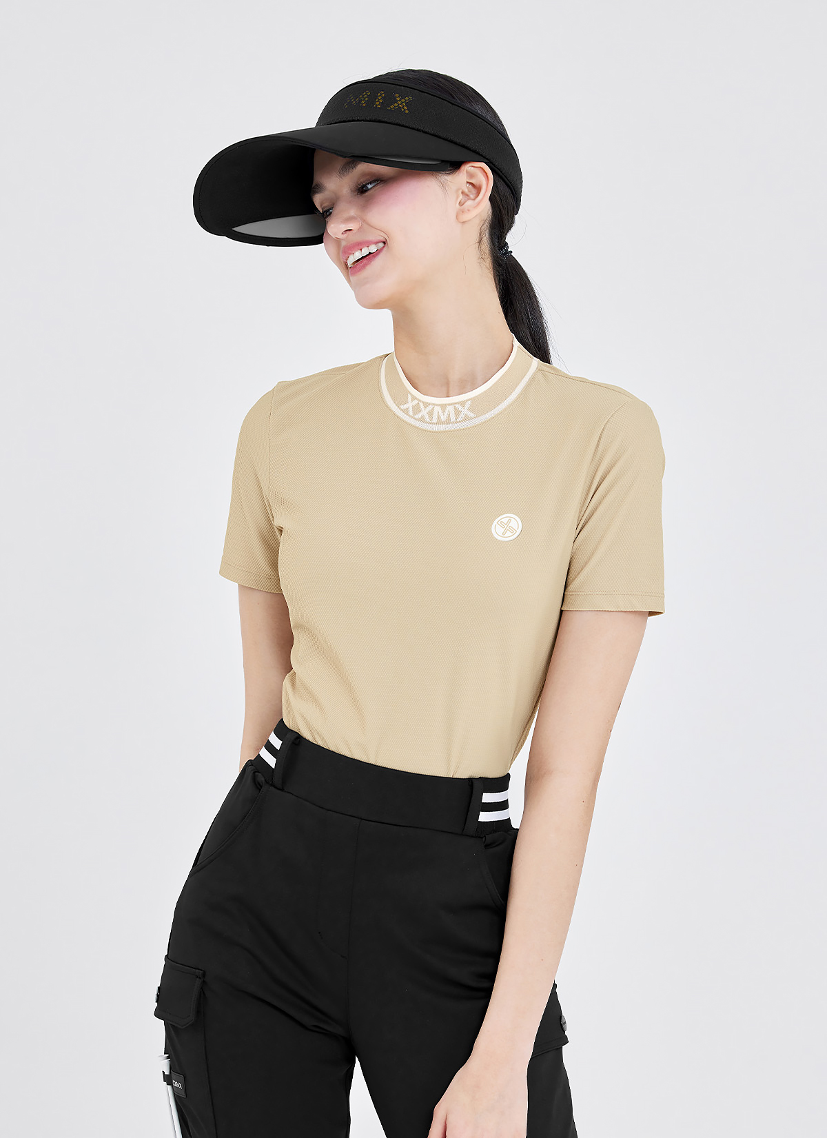 "얼굴이 더 화사해 보여요!" 목 둘레를 편안하게 감싸주는 넥 라인에, 젝시믹스의 아이덴티티를 담은 XXMX 자카드 로고와 배색 라인으로 캐주얼한 무드를 더했어요.