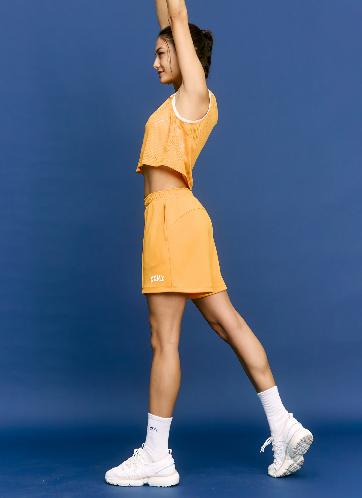 젝시믹스의 이유 있는 자부심, 프런트 중앙의 XXMX 배색 로고와 우측 밑단의 포인트 라벨로 브랜드의 아이덴티티를 포인트 있게 보여줬어요. FABRIC INFO