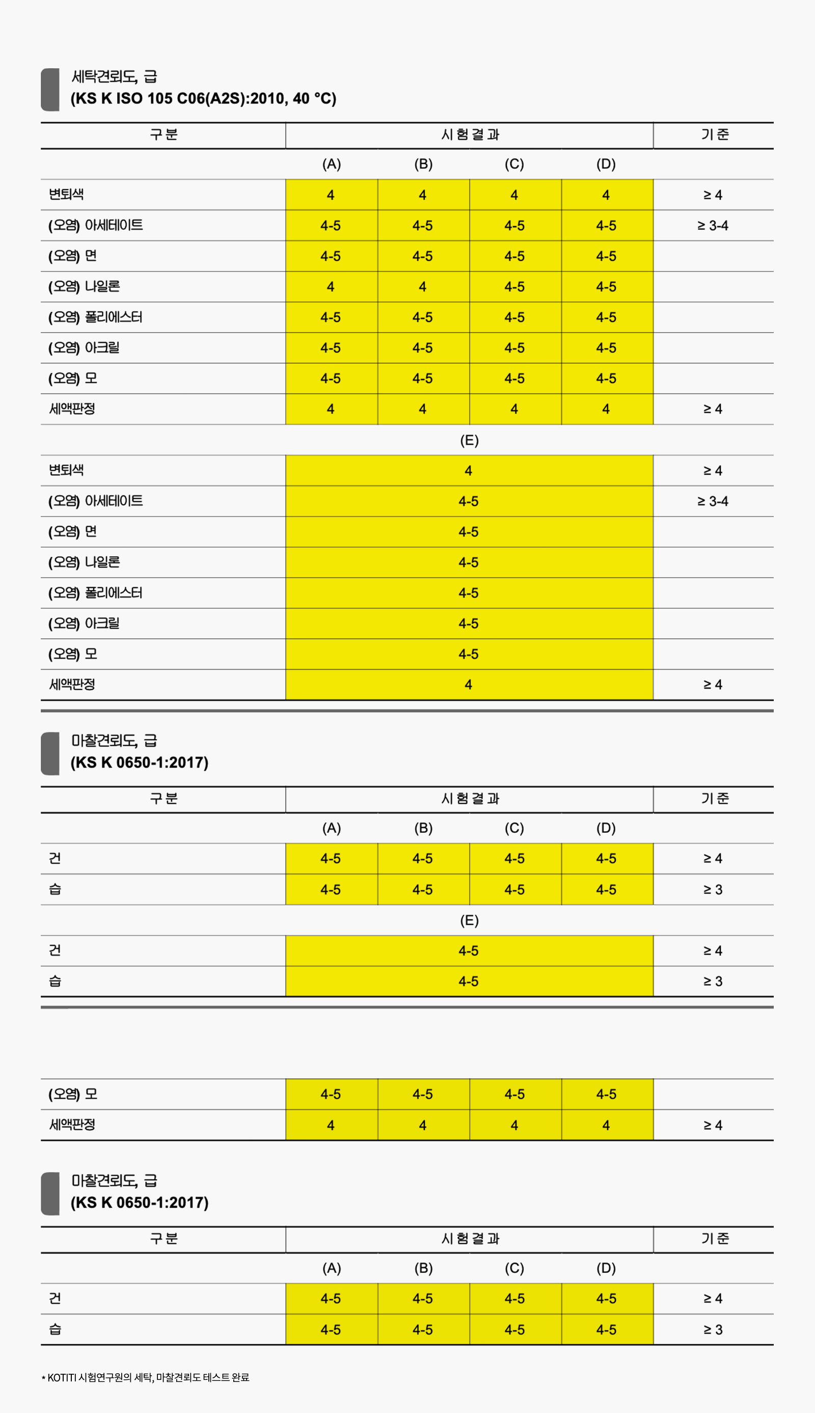 잦은 세탁, 다양한 마찰에도 끄떡없는 5 COLORS