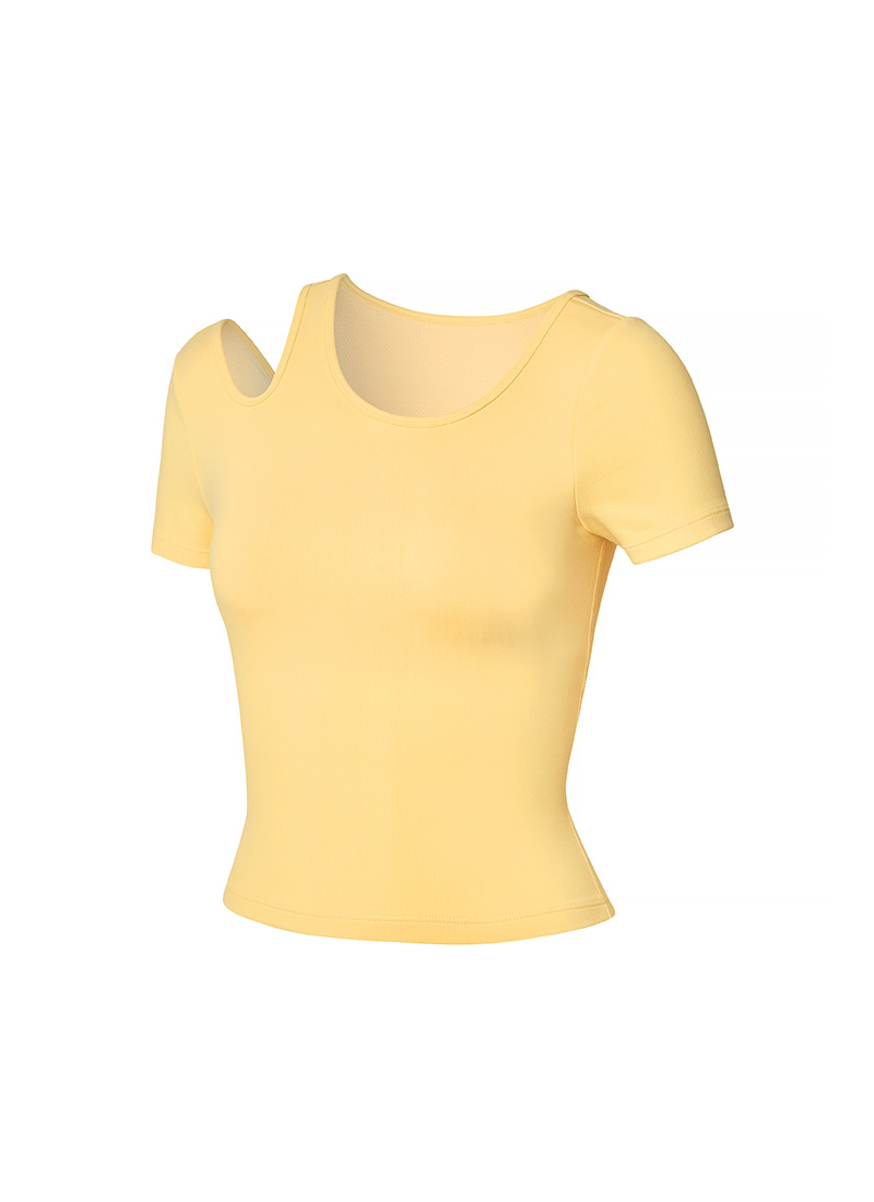 02 "어느 각도에서 봐도 시선 집중!" 한쪽 어깨 라인에 라운드형 컷아웃 디테일로 포인트를 주어 트렌디한 분위기를 더해줄 뿐만 아니라 상체의 가동범위도 넓혀줘요.