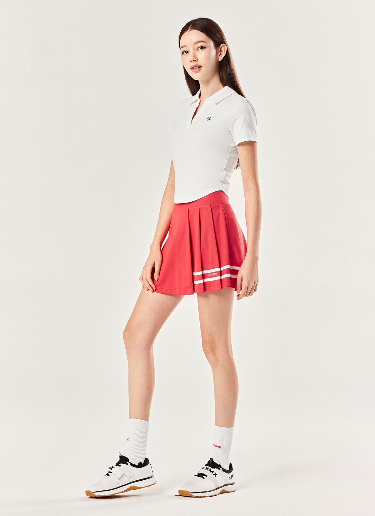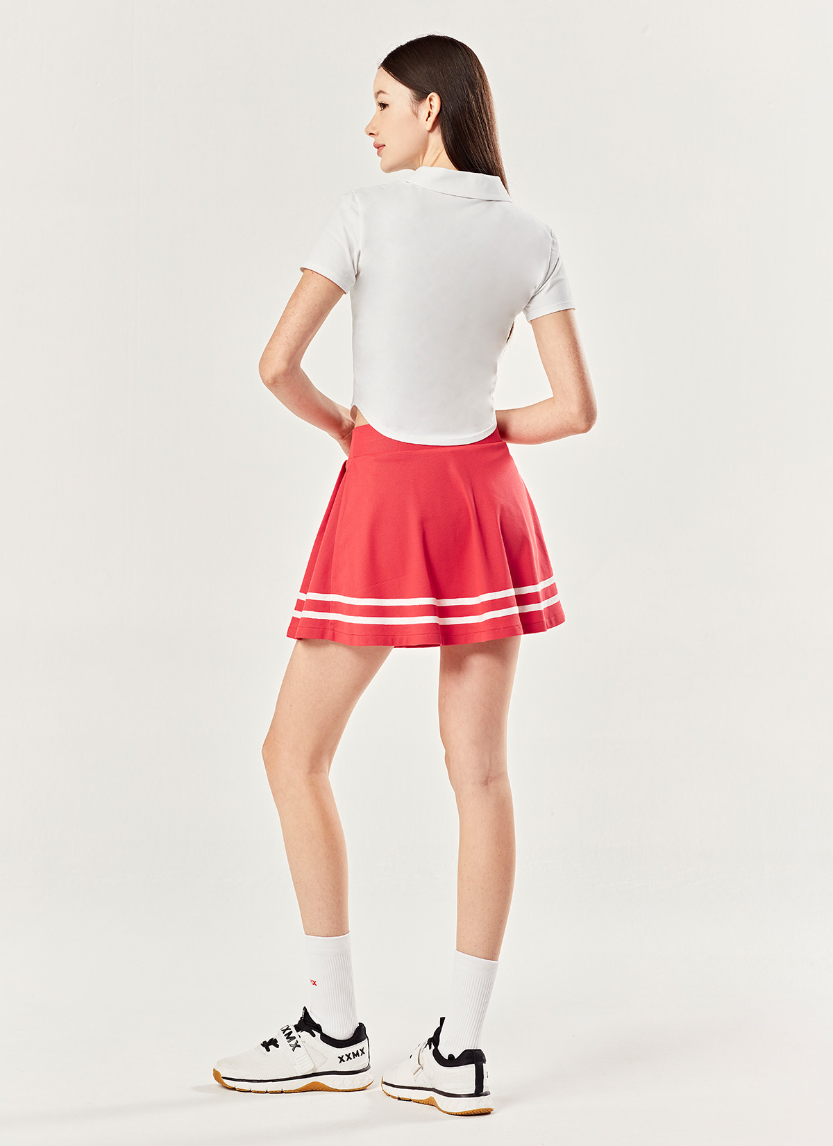 발랄한 플리츠와 배색 라인 포인트로 스포티하게! 체리핑크