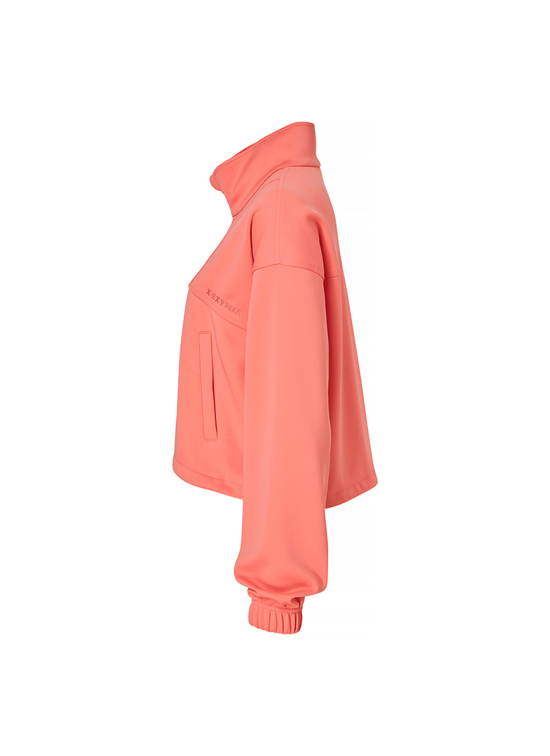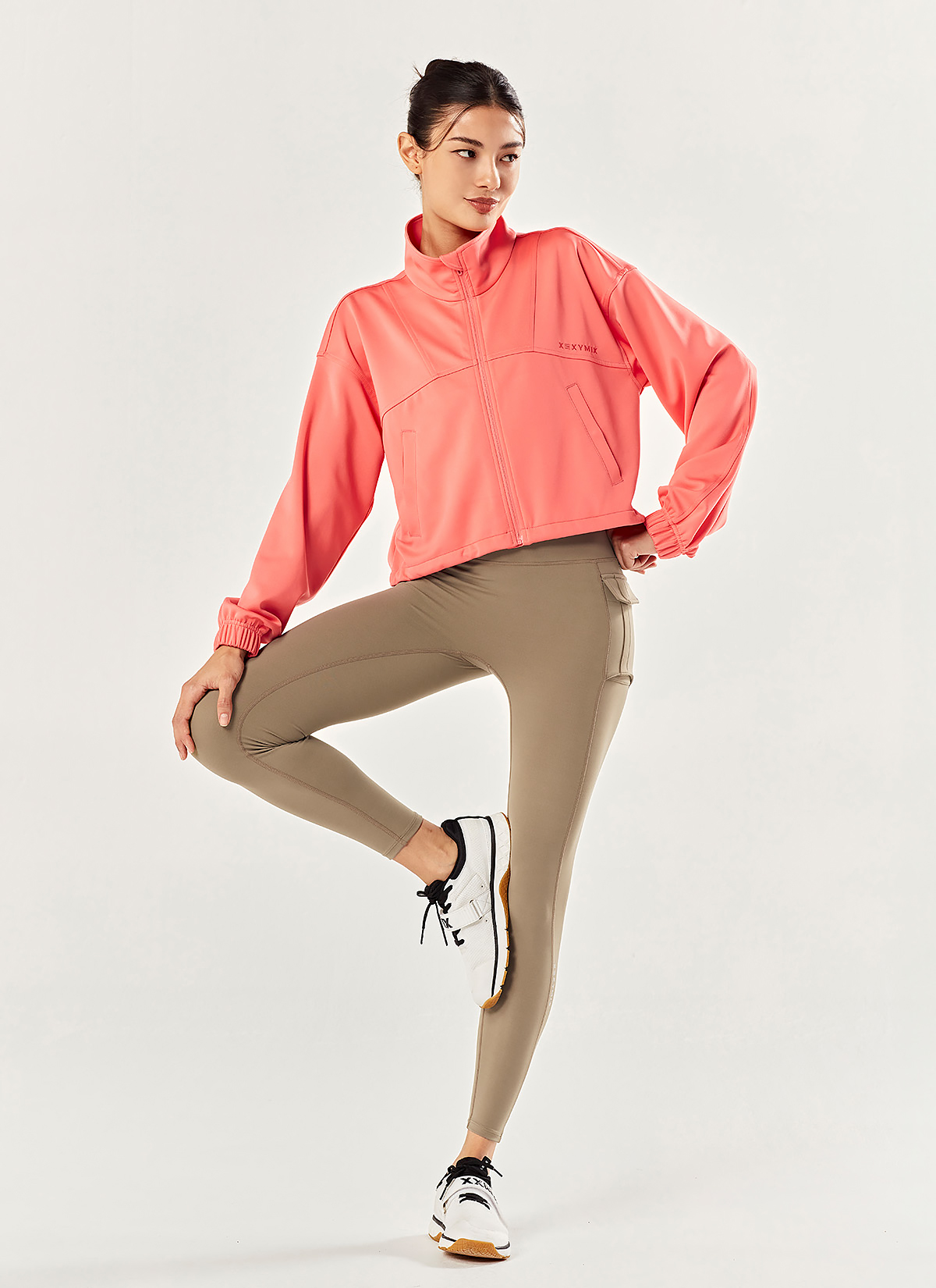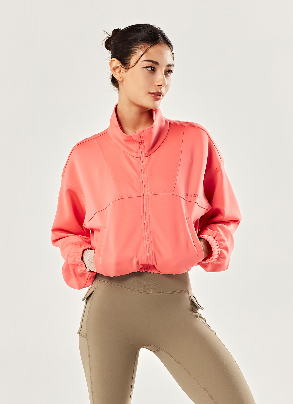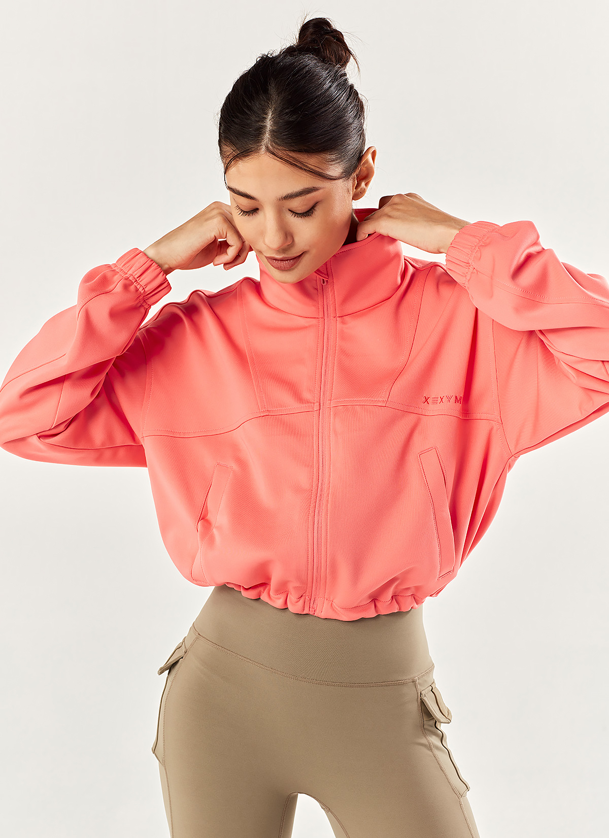 남다른 편안함, 소프트 쿠션 하이넥 집업 폭신한 양면 쿠션지로 매일 입고 싶은 착용감, 세미 크롭 기장으로 영한 애슬레저 룩 완성! 코랄아모르