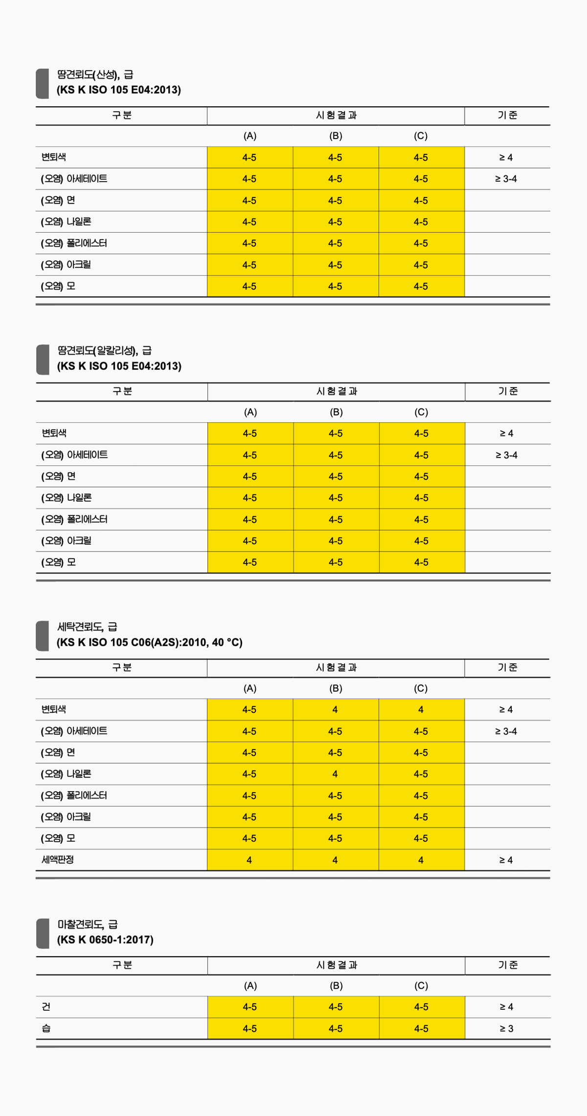 다양한 자극에도 걱정 없는 일상 생활 중 흘리는 땀, 잦은 세탁, 다양한 마찰에도 끄떡없는 강한 내구성을 갖추어 오래도록 깔끔하게 입을 수 있어요.
