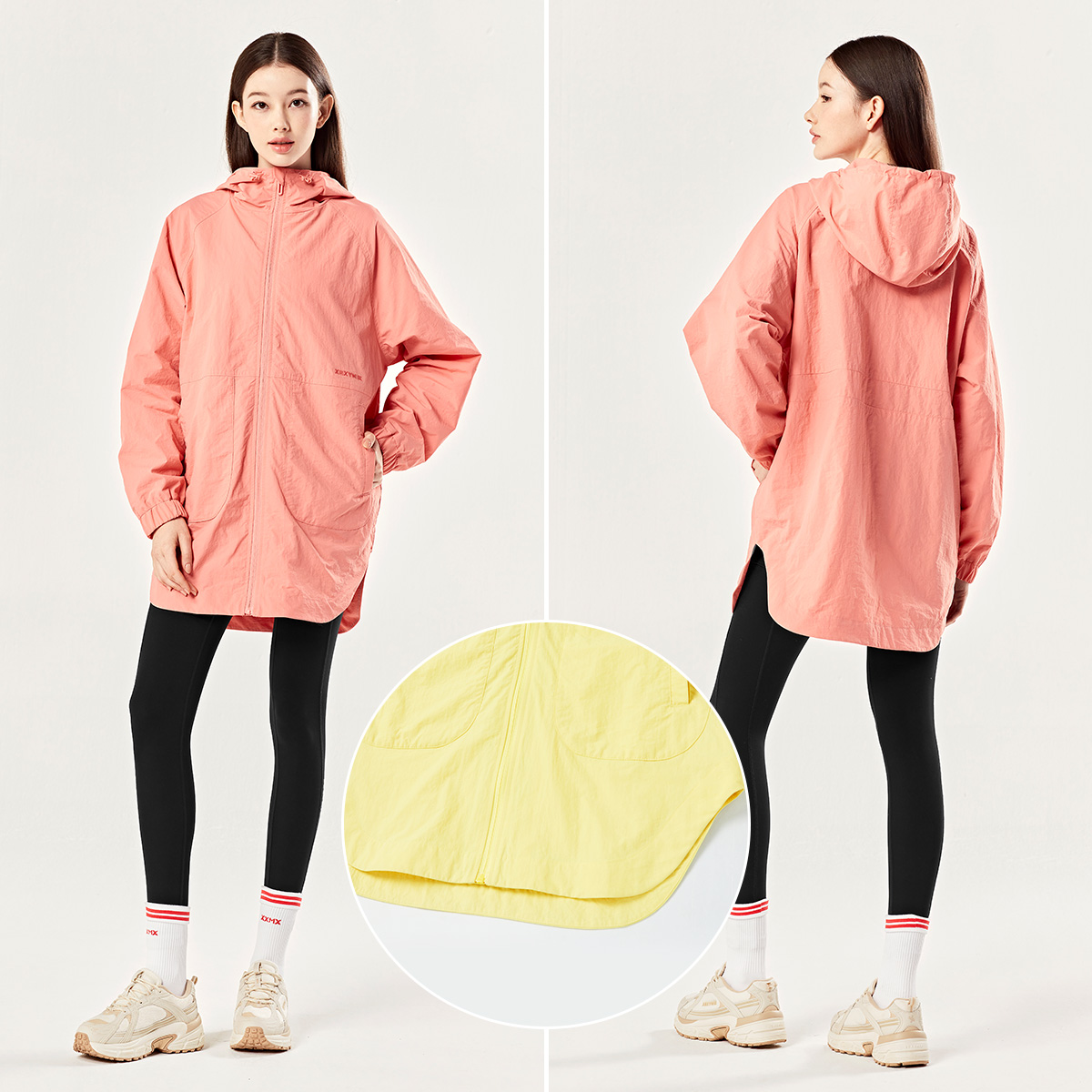 일상부터 아웃도어 액티비티까지- 신경 쓰이던 힙 라인을 완벽하게 커버해 주니까, 레깅스 위에 가볍게 걸치기만 하면 외출 준비 끝! DESIGN POINT