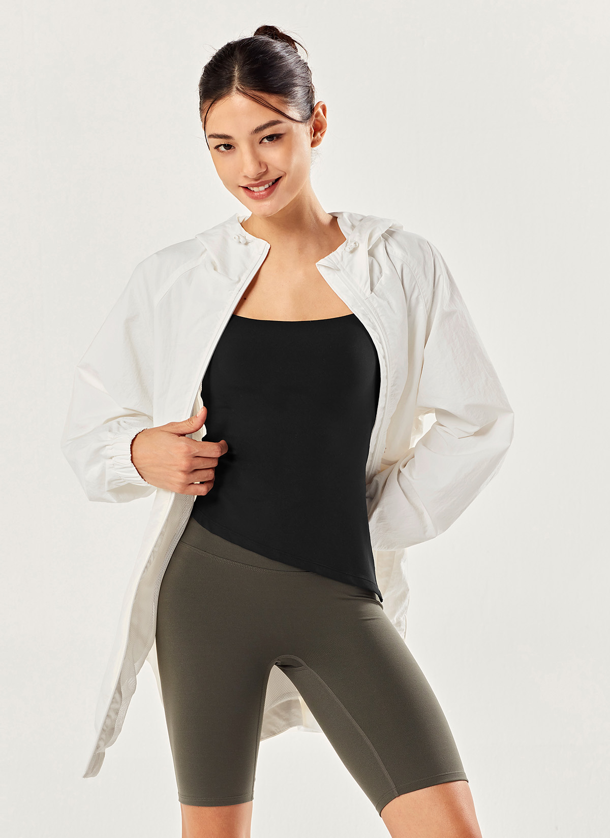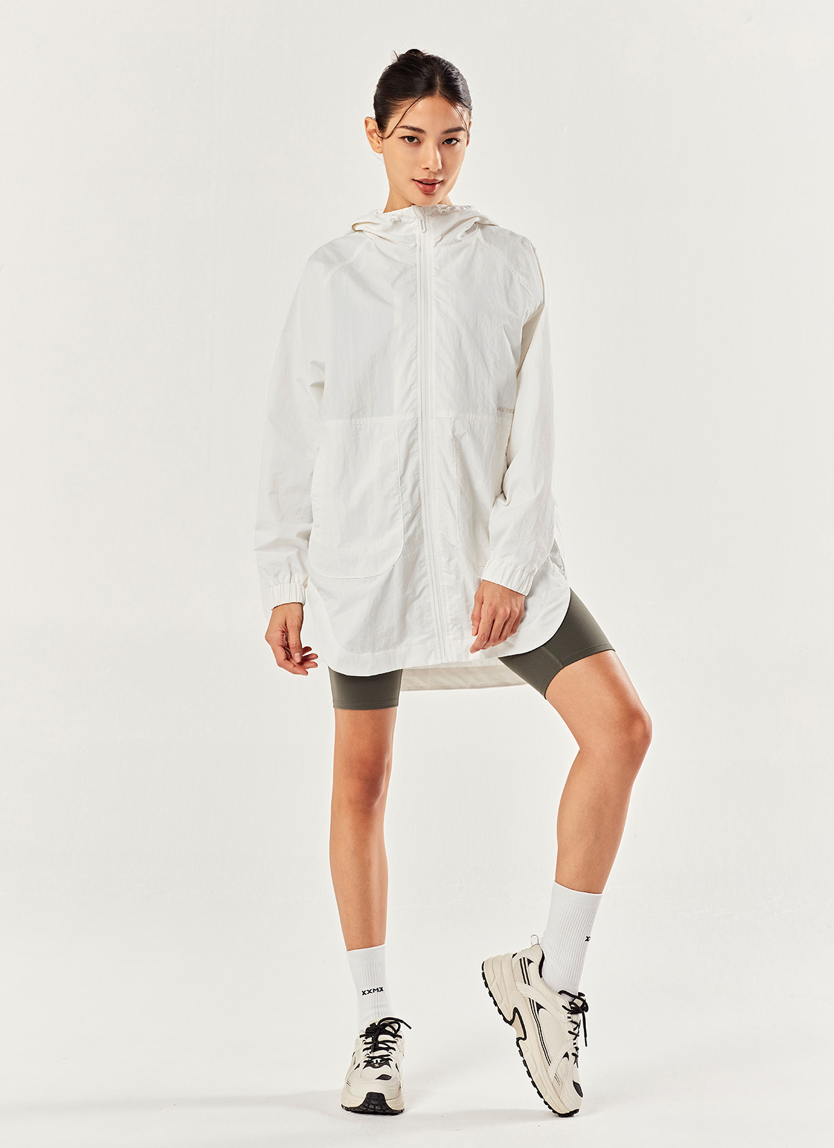 남다른 편안함, 크링클 우븐 롱 바람막이 내추럴 무드의 고밀도 우븐 소재와 메쉬 안감으로 바람 부는 간절기에 입기 좋은 스타일리시 아우터 아이보리