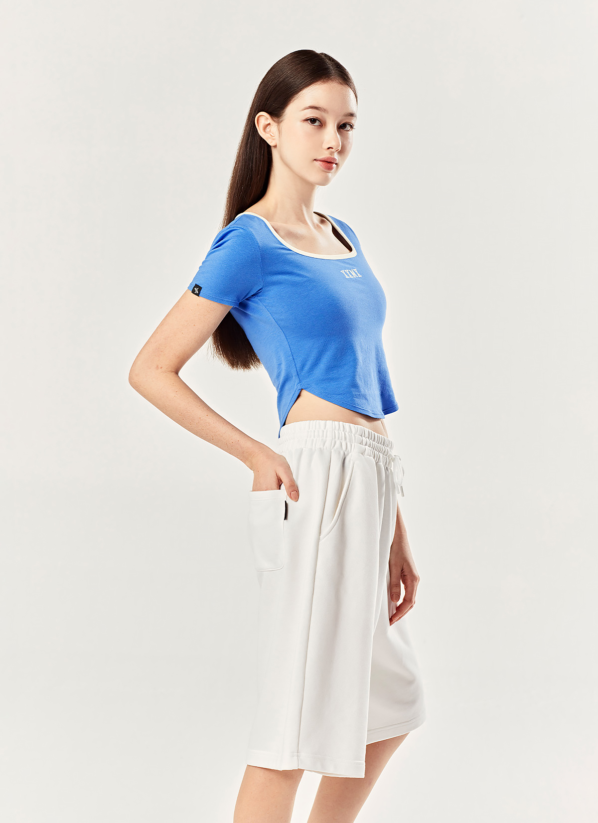 "포켓이 있어 가볍게 외출해요." 양쪽 사이드의 사선 포켓과 우측 힙 부분의 아웃 포켓으로 실용성을 높이고, 캐주얼한 무드를 더했어요.