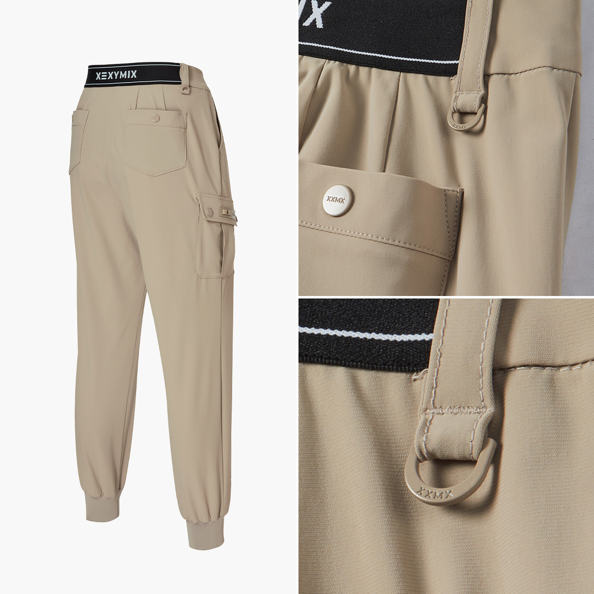 "라운딩 시 필요한 소지품을 쏙!" 넉넉한 크기의 사이드 포켓과 허벅지 카고 포켓으로 실용성을 높이고, 티꽂이 로고 와펜을 더해 라운딩 시 티를 보관할 수 있어 간편해요.