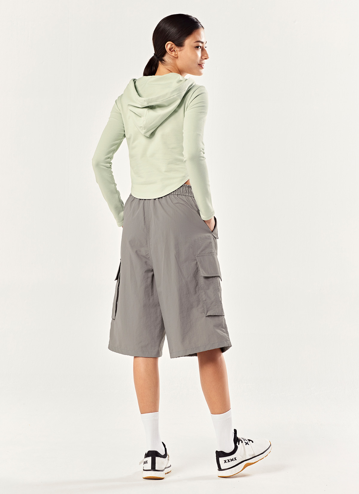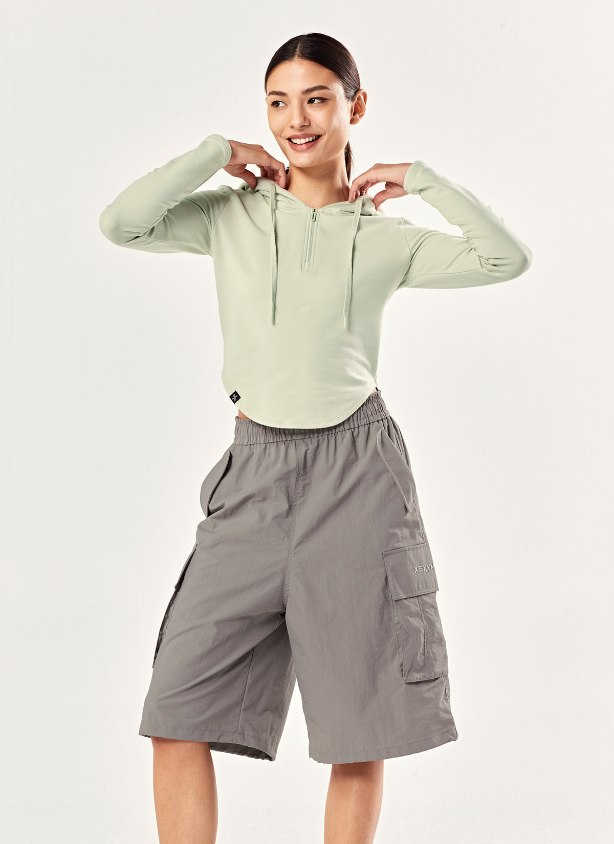 남다른 편안함, 스트리트 와이드 카고 쇼츠 무릎까지 오는 넉넉한 기장으로 편안하고 멋스럽게! 오늘의 무드에 맞게 내 맘대로 연출하는 투웨이 쇼츠 코지그레이