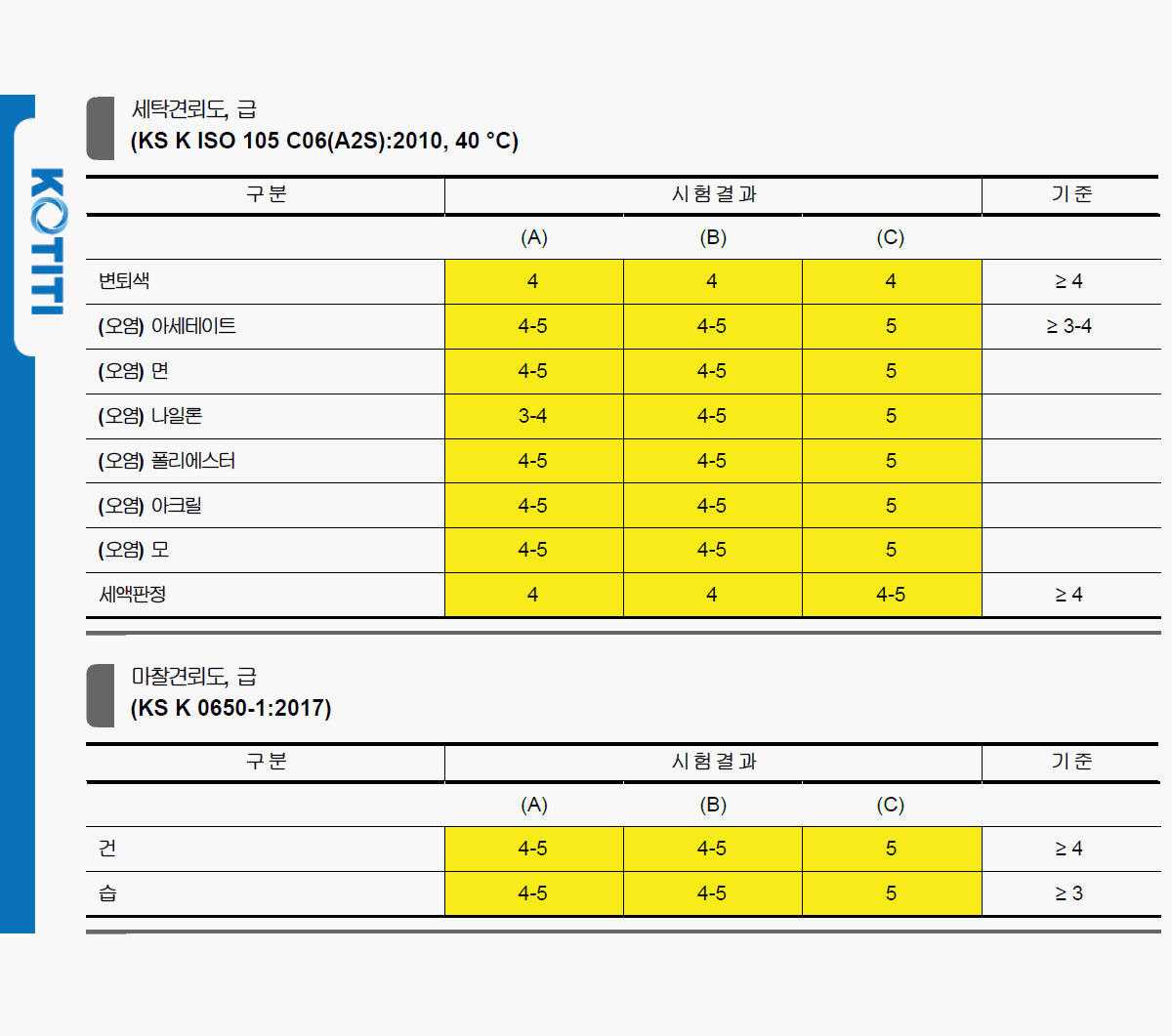 * KOTITI 시험연구원의 세탁, 마찰견뢰도 테스트 완료 다양한 자극에도 걱정 없는 잦은 세탁, 다양한 마찰에도 끄떡없는 강한 내구성을 갖추어 필드 웨어로 제격이에요. 3 COLORS