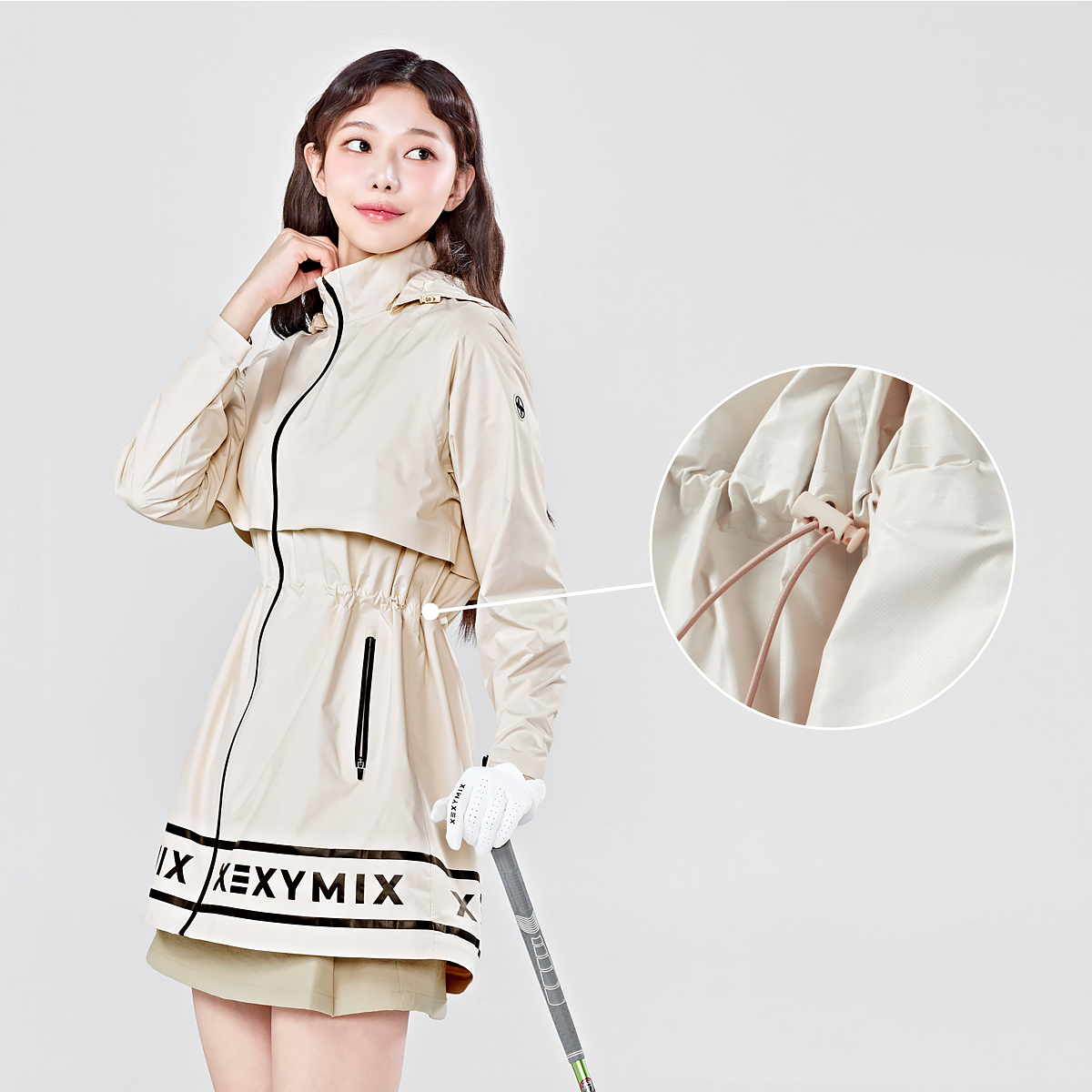 05 "허리가 더 슬림해 보여요!" 허리 라인 안쪽에 스트링 스토퍼를 삽입해 취향에 따라 여성스러운 실루엣을 강조하거나 여유로운 핏으로 연출할 수 있어요.