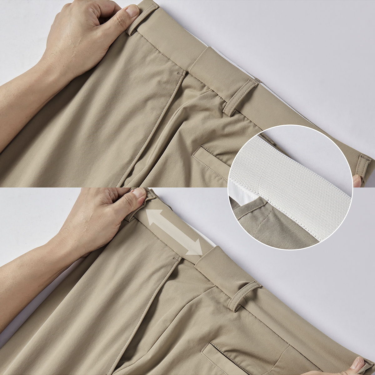 01 "마법처럼 감쪽같은 편안함" 허리 양쪽 사이드에 매직 밴딩 디테일을 내장해 슬랙스의 포멀함은 그대로 유지해 주면서, 복부 압박 없이 편안한 착용감을 선사해요. *매직 밴딩: 겉으로 밴드가 드러나지 않도록 설계한 히든 디테일