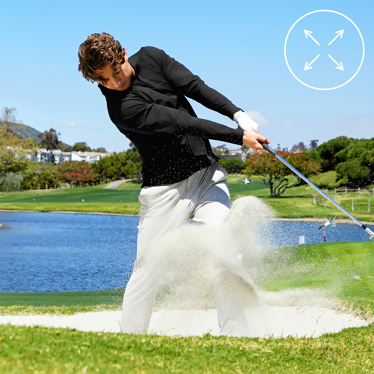 02 "하루 종일 입어도 편안해요!" 신축성이 뛰어난 폴리우레탄 원사를 혼방하여 일상부터 라운딩까지 다양한 움직임을 편안하게 서포트해 줘요.