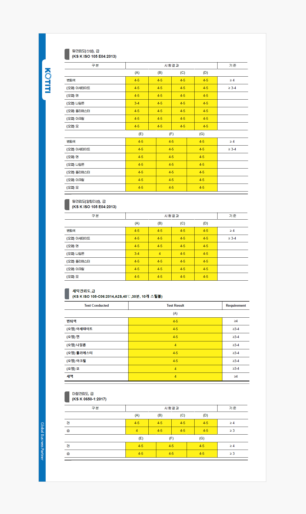*KOTITI 시험연구원의 땀, 세탁, 마찰견뢰도 테스트 완료 HOW TO CHOOSE