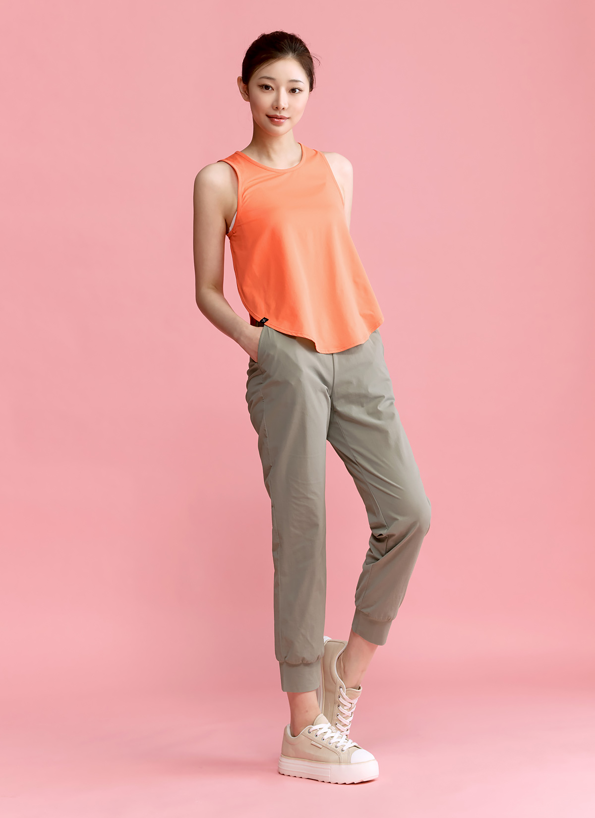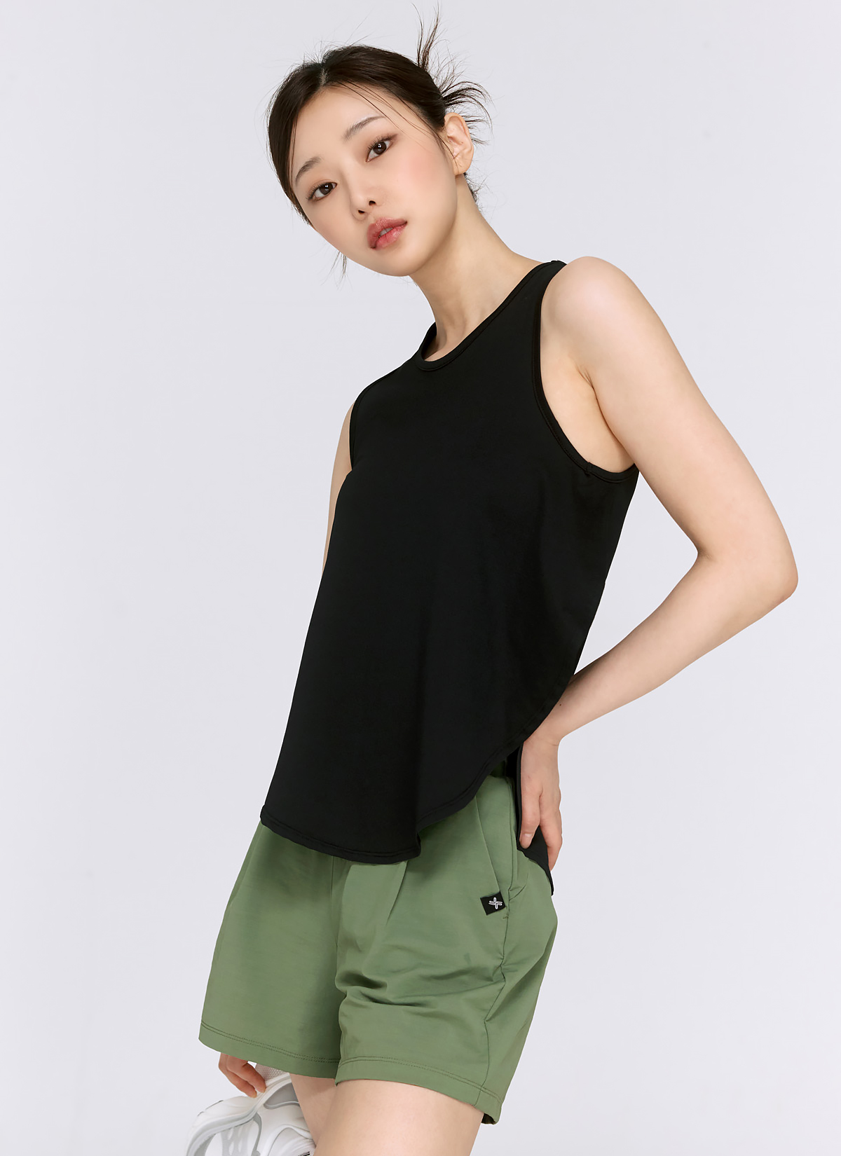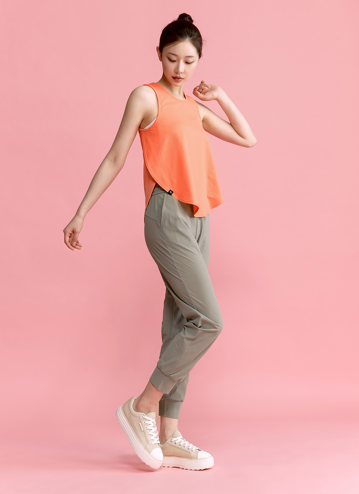 04 "내 허리 라인보다 슬림해 보여요!" 밑단을 옆선이 더 짧은 라운드 형태로 디자인하여 허리 라인이 더욱 슬림해 보이는 시각적인 보정 효과를 선사해요.
