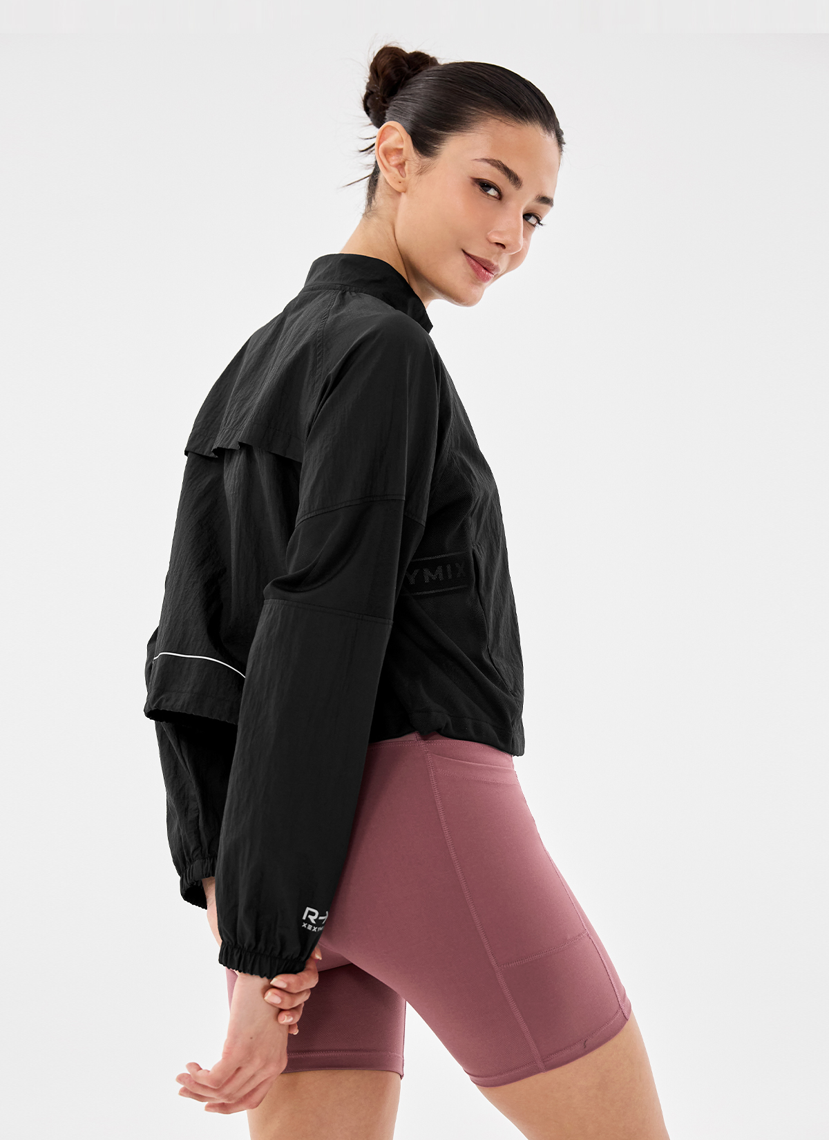 07 "야간 러닝도 안전하게 즐겨요." 우측 소맷단과 후면 밑단 위에 빛을 반사하는 리플렉티브 효과의 젝시믹스 러닝 로고를 넣어 야간 러닝 시 가시성을 높여줘요.