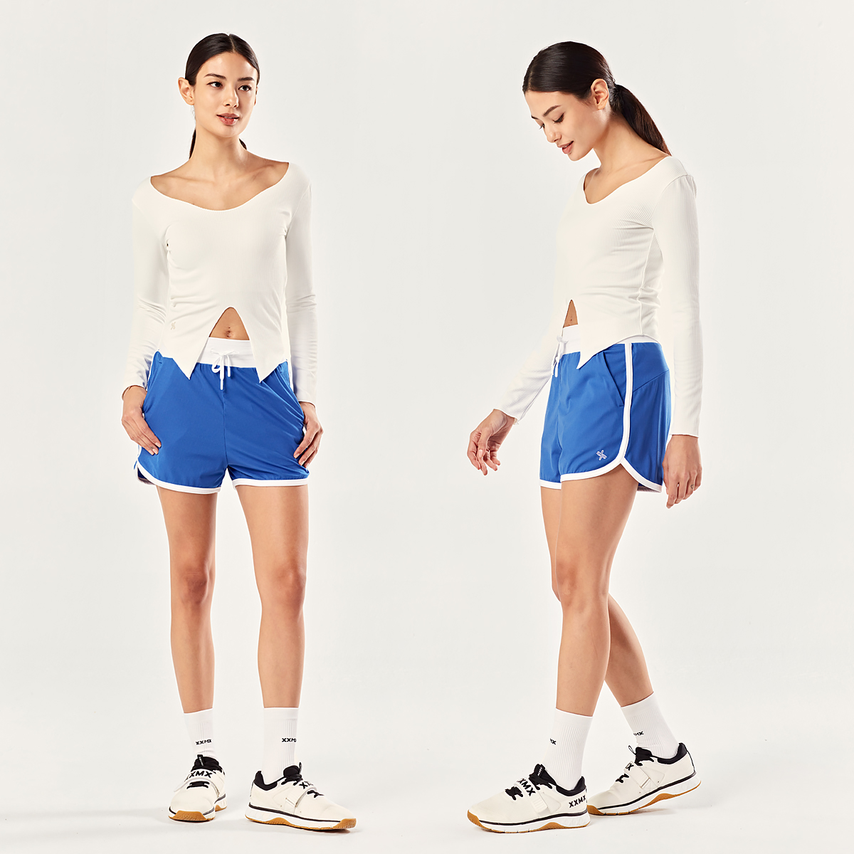 코트 위에서 더욱 빛나는 돌핀 헴 라인 쇼츠,