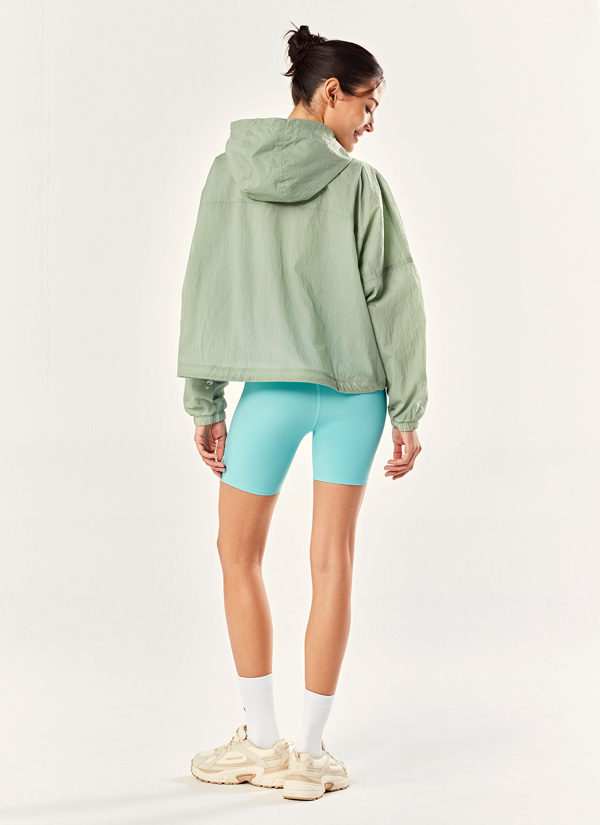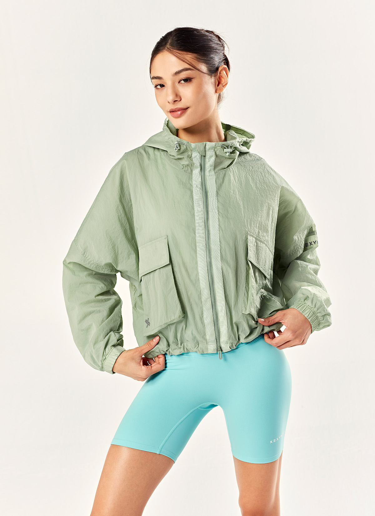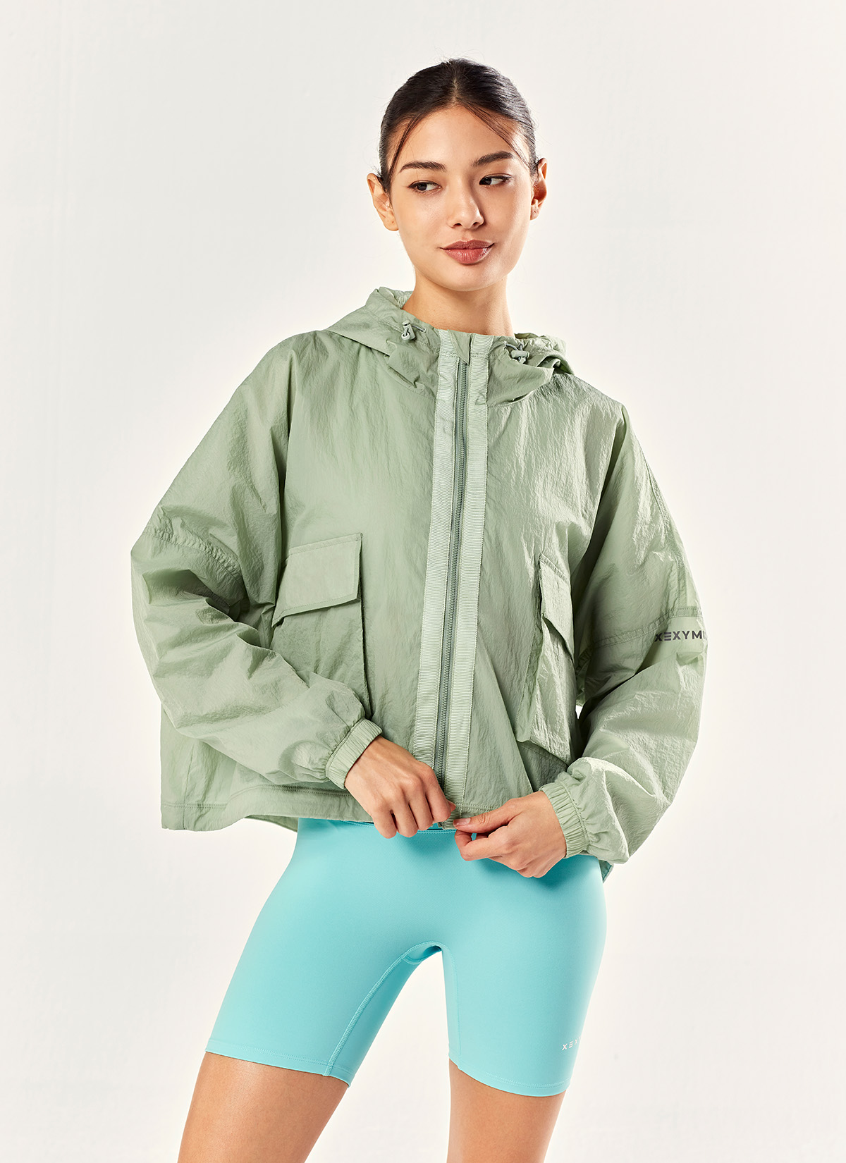 때로는 루즈하게,때로는 크롭하게 후드 크롭 투웨이 바람막이 ![]() 크롭 기장에 돌먼 소매로
