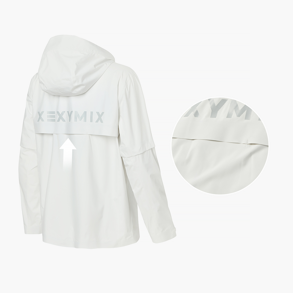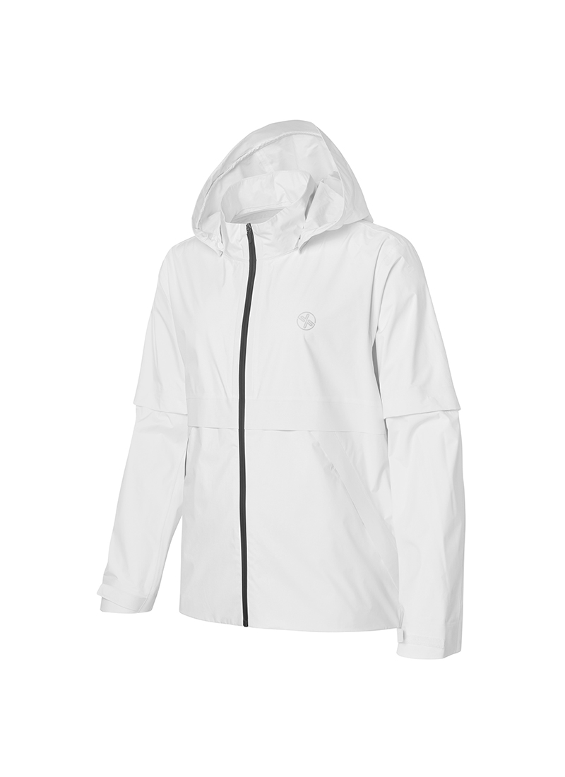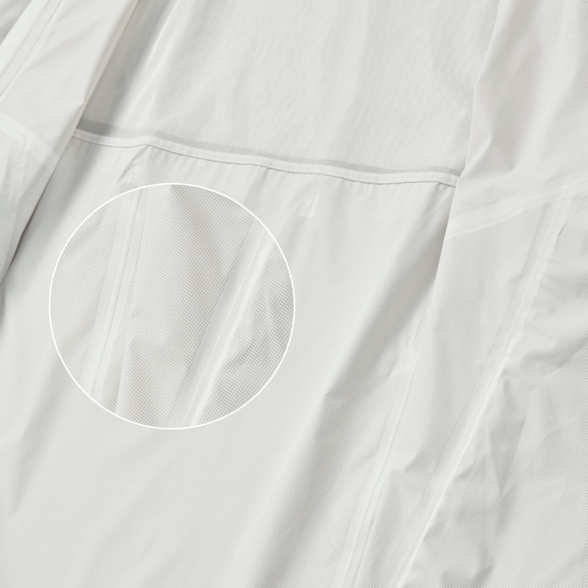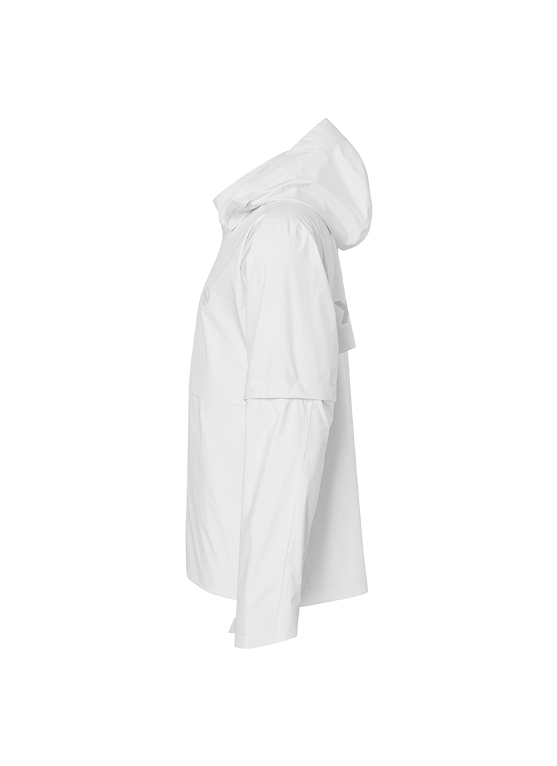 01 "궂은 날씨에도 계속되는 퍼포먼스" 가벼우면서도 부드러운 2.5 레이어* 구조의 폴리에스터 우븐 소재로, 외부로부터 바람을 효과적으로 막아줄 뿐만 아니라 비가 옷 내부로 스며들지 않아 우천 시 활용도가 높아요. *2.5 레이어